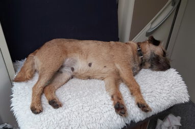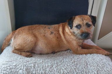 Jane is de stamhoudster van onze Mountain Dew Border Terriërs. Op 28 oktober 2017 heeft Jane haar eerste nest gehad, het Mountain Dew N-nest. Op 16 november 2019 is het Mountain Dew O-nest geboren. Het derde nest van Jane, het Mountain Dew Q-nest, is geboren op 5 februari 2021. Dit is ons grootste Border Terriër nest tot nu toe: 4 reutjes en 3 teefjes.