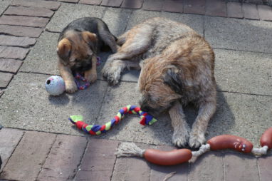 Sybil is in verhouding een klein hondje, zeker in vergelijking met Lewis. Maar ze heeft juist de ideale maat voor een Border Terriër. Zo horen ze te zijn. En dat is ook iets waar wij naar streven.