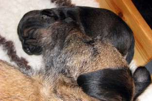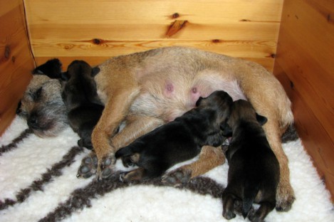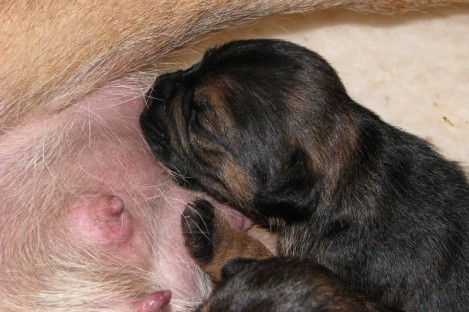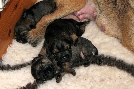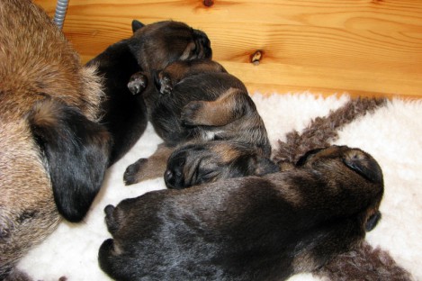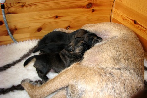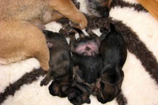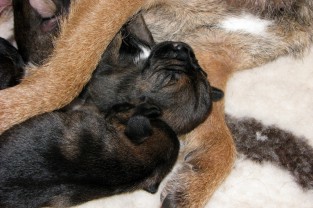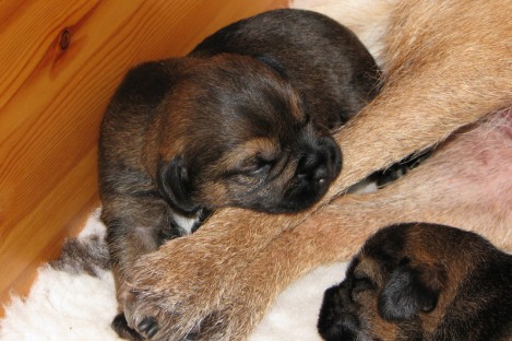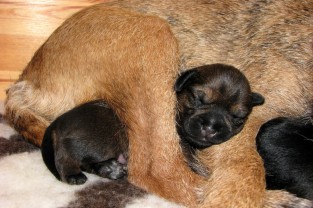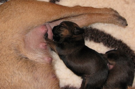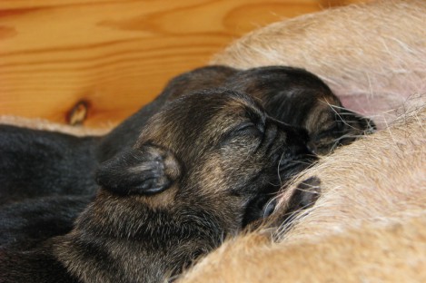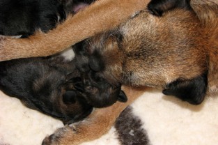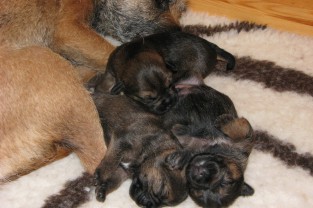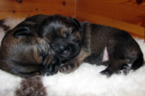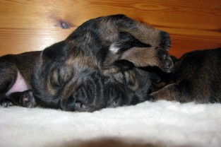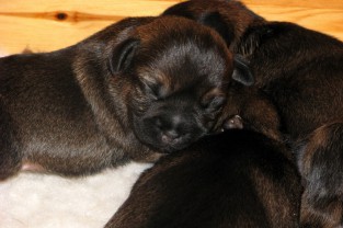 We zijn de tweede week ingegaan. De pups groeien goed en zijn allemaal in gewicht verdubbeld. Er is nu een goed ritme in het zogen en het slapen. De pups drinken nu bijna elke twee uur en liggen tussendoor heerlijk te slapen. Ivy is een super-moeder. Na elke zoogbeurt worden de pups allemaal grondig gepoetst. Ze houdt precies bij wie ze al gehad heeft en wie nog niet. Ook de werpkist is altijd helemaal schoon,beter kan het niet.