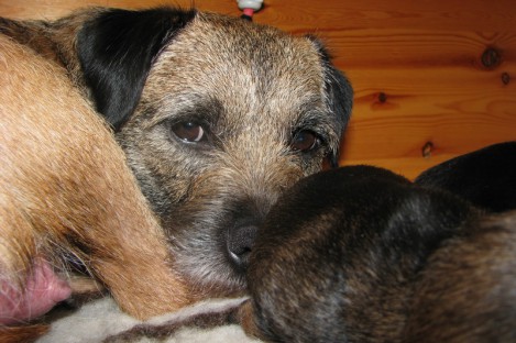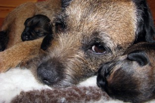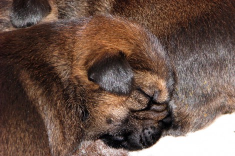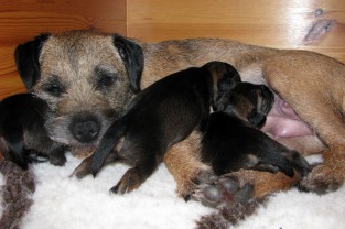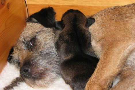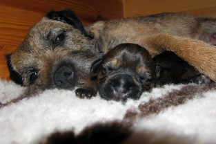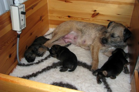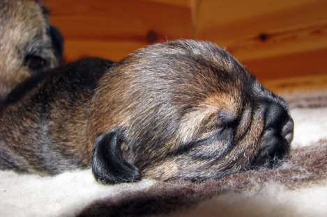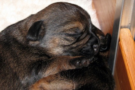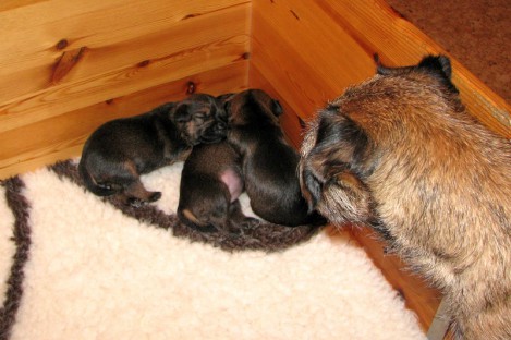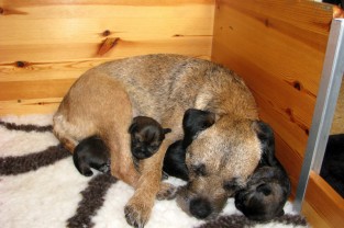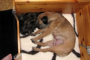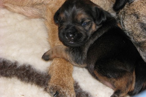 Heel langzaam beginnen de oogjes van de pups open te gaan. Je ziet een steeds groter spleetje komen. Ook de oren beginnen open te gaan. Ivy ligt nu af en toe voor de bak te slapen, maar ze verliest haar pups niet graag uit het oog. Een kort wandelingetje wil ze nog wel maken, maar dan snel terug naar haar kroost.