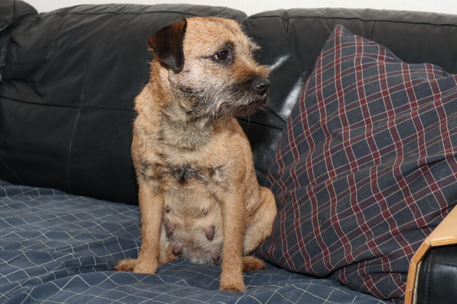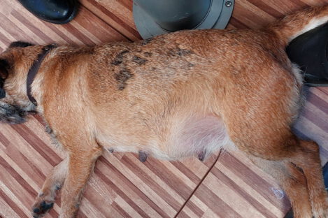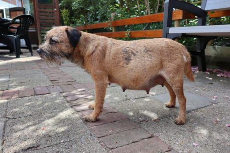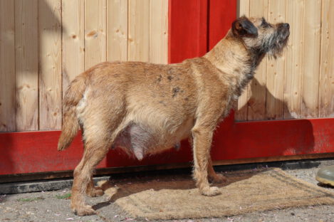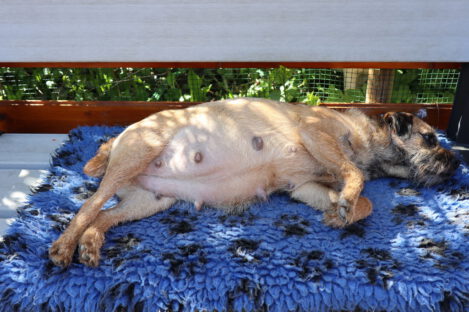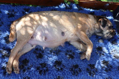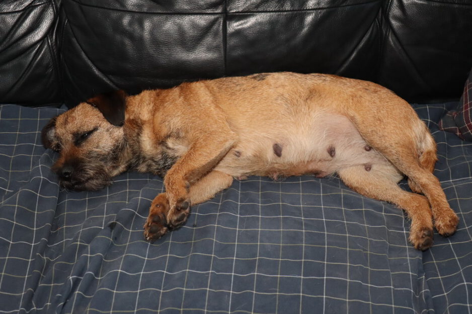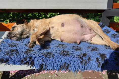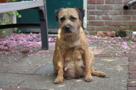 Jane blijft lekker doorgroeien. Haar tepels en melklijsten zijn nog groter geworden. Als je op haar rug kijkt zie je goed dat ze aan het uitdijen is. We zijn benieuwd hoeveel pups het gaan worden.