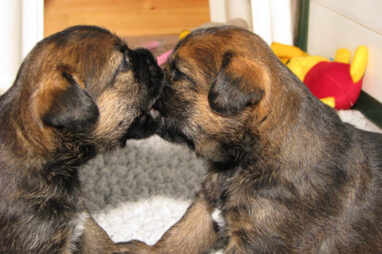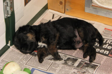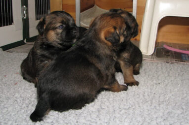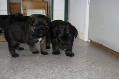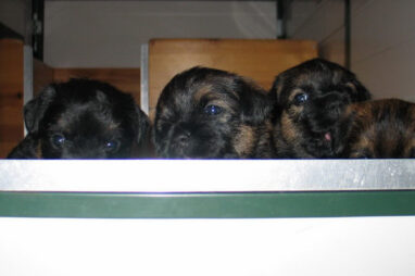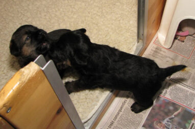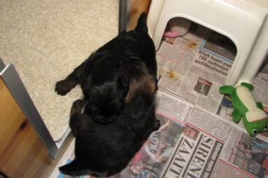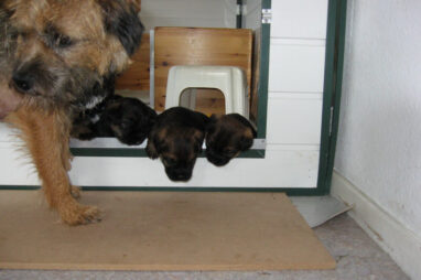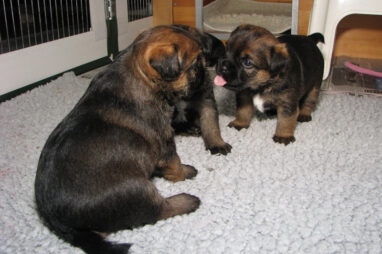 We vonden dat het wel tijd werd de wereld van de pups wat groter te maken. Dus we hebben de kamerkennel opgezet. De eerste keer dat we de werpkist open maakten keken ze toch wel raar op. Met wat steun van Marloes en Fudge kwamen ze heel voorzichtig de kamerkennel in. De eerste keer gingen ze nog niet van het kleedje af. Elke keer dat ze er uit mochten ging het beter. Nu gebruiken ze de hele kamerkennel en hebben er grote lol in.