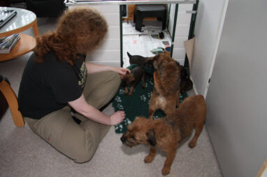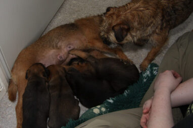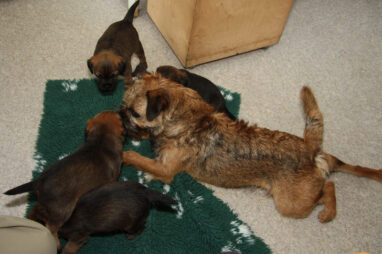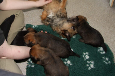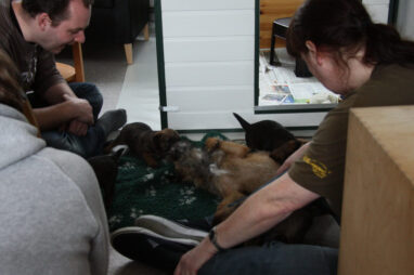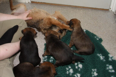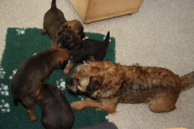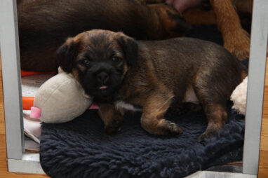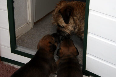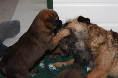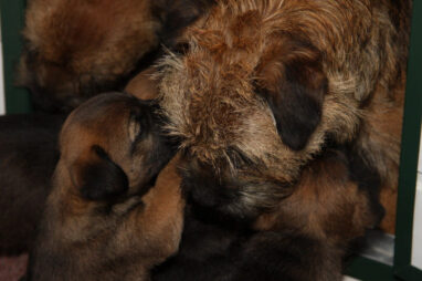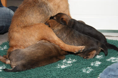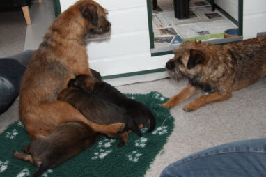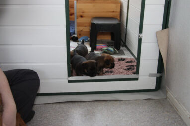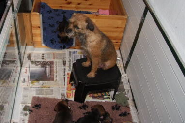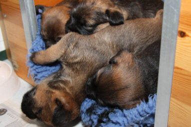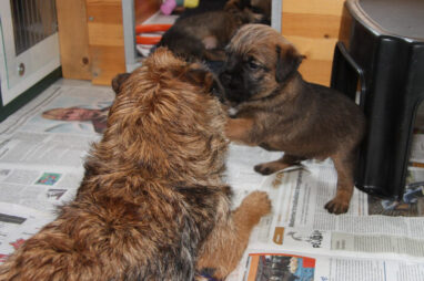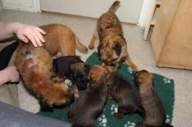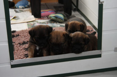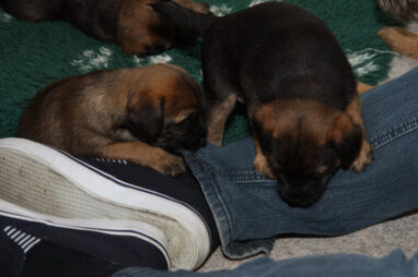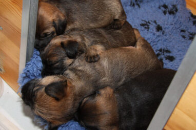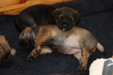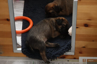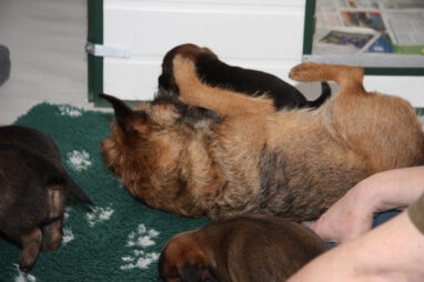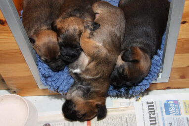 Zondag was een drukke dag voor de pups. Veel bezoek, wat wel heel goed is voor de socialisatie van de pups, maar het is ook heel vermoeiend voor ze. En ook Fudge raakt wat van slag. Ze geeft bijna nooit melk als er bezoek is, dus het ritme veranderd dan een beetje. Maar ook dat moeten ze leren. En gelukkig hebben we hele leuke nieuwe eigenaren voor de pups, dus het is wel heel gezellig.