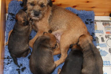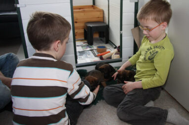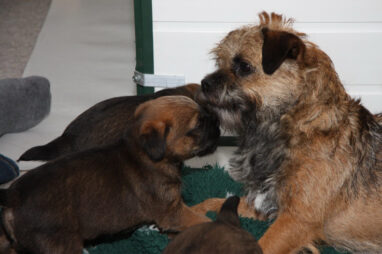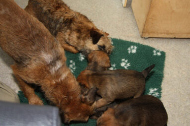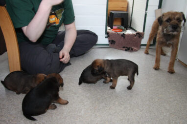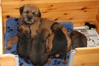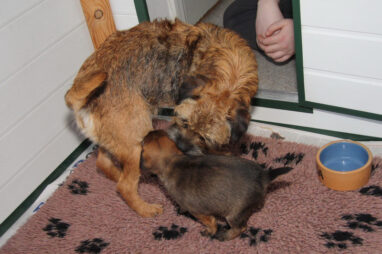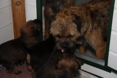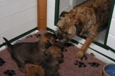 Marloes is druk bezig om Hestia met de pups te socialiseren. Hestia vindt de pups schitterend, het is bijna een obsessie voor haar. Ze vindt het nu prachtig de pups schoon te likken. Dat wordt nog wat als de pups nog wat groter zijn en met Hestia kunnen spelen.