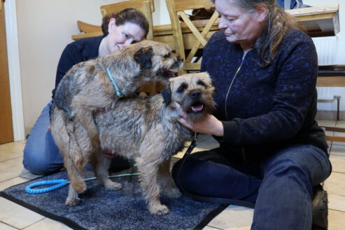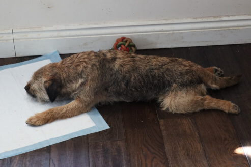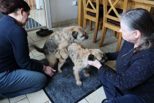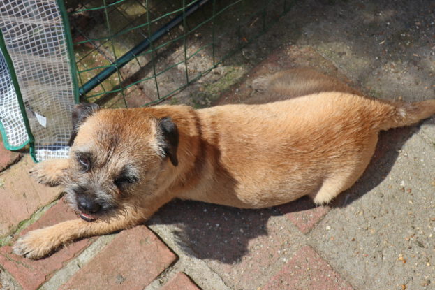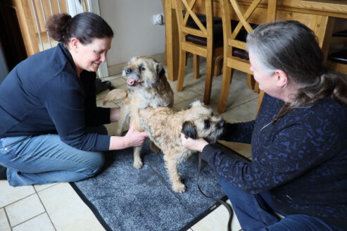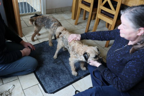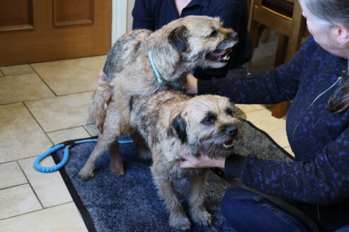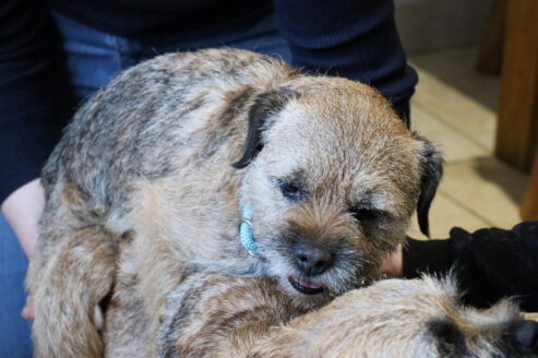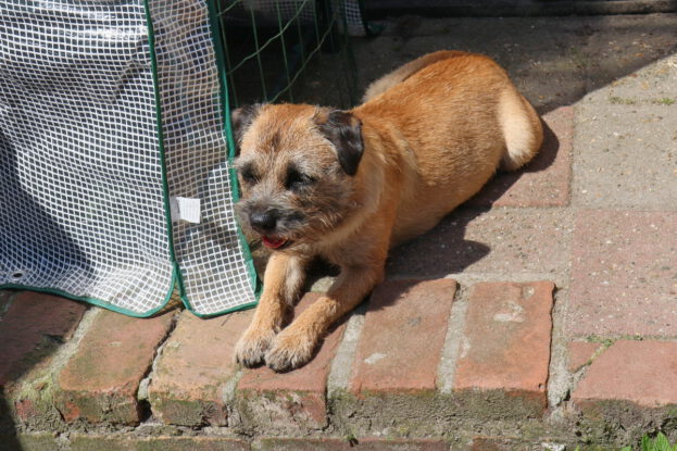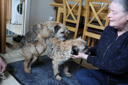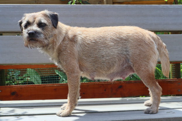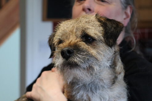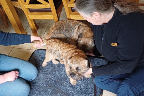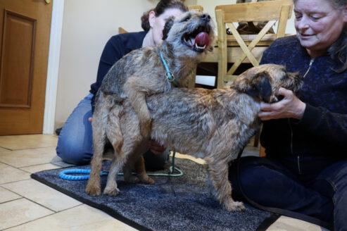 Ans is altijd heel precies in het uitzoeken van geschikte reuen. Voor Rosie is ze al rond gaan kijken toen Rosie nog geen jaar oud was. Ans heeft een hele mooie passende reu gevonden in Engeland bij Julie, de fokster van Lewis. Deze reu, Glen, is door Julie gekocht en heeft geen verwantschap met onze lijnen. Glen is een mooi gebouwd hondje zonder overdrijvingen en past heel goed bij Rosie. Glen heeft alle eigenschappen die wij graag in onze Mountain Dew Border Terriërs zien.