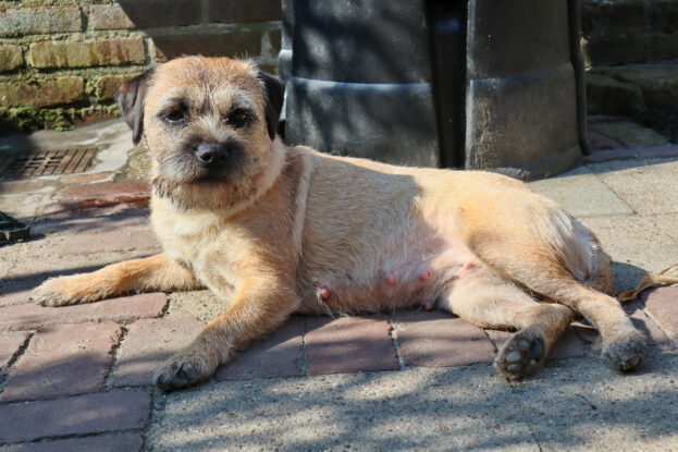 Het gaat heel goed met Rosie. Ze voelt zich prima en ze is nog overal gezellig bij. Ze neemt ook haar rust, wat heel goed is. Rosie krijgt nu vier keer per dag eten. Door de groei van de puppy’s kan ze minder eten in haar maag hebben, maar ze moet natuurlijk wel voldoende eten voor haarzelf en de puppy’s. Ze krijgt daarom meer eten dan normaal, maar dan verdeeld over meerdere maaltijden.