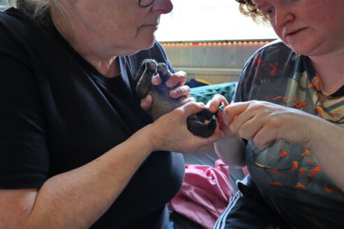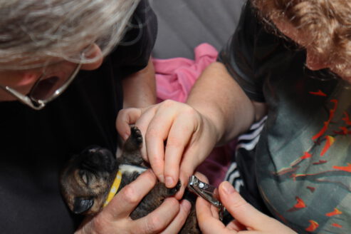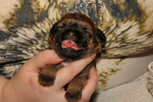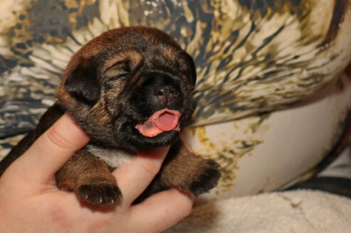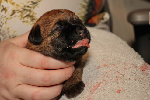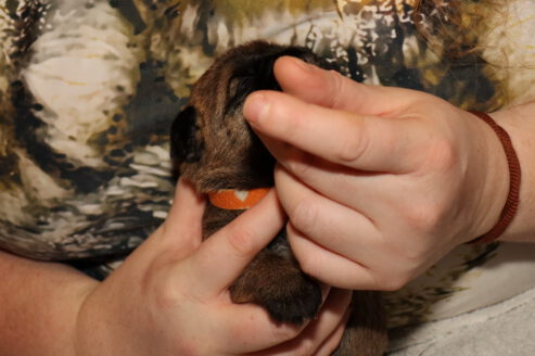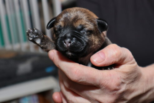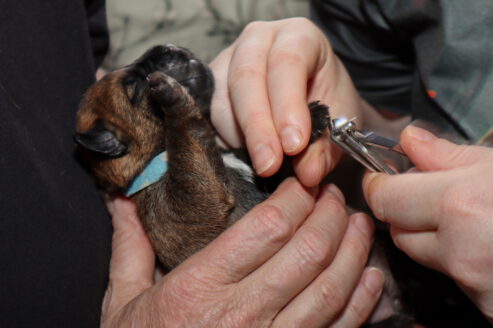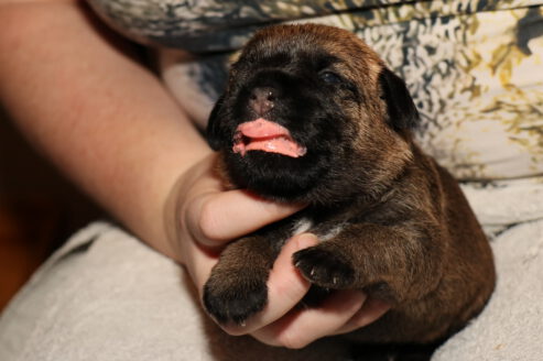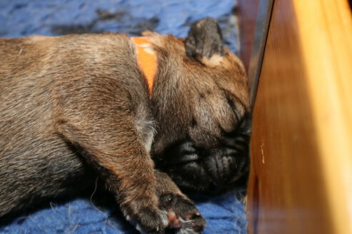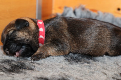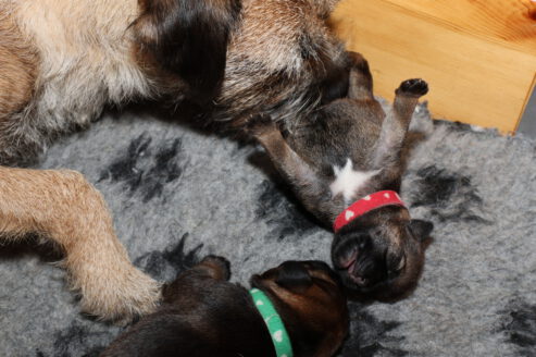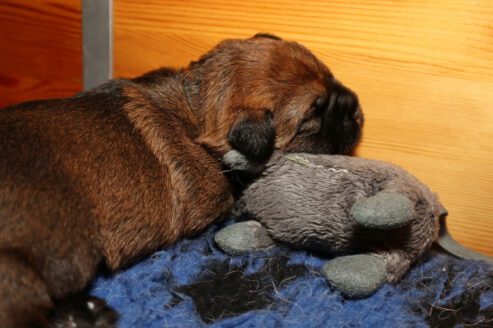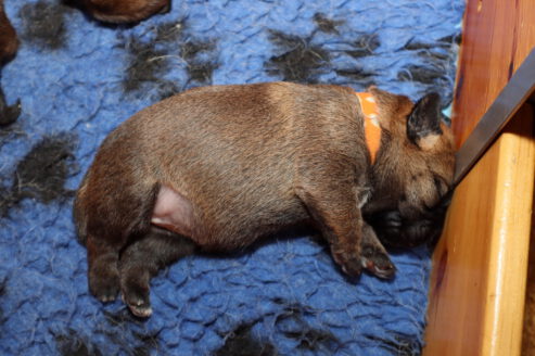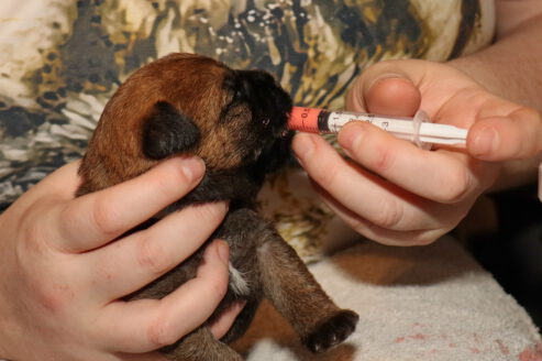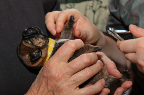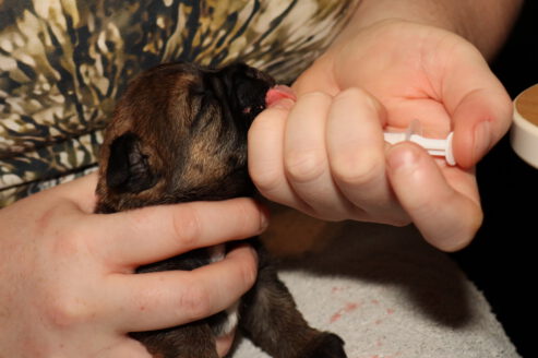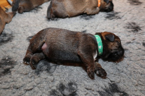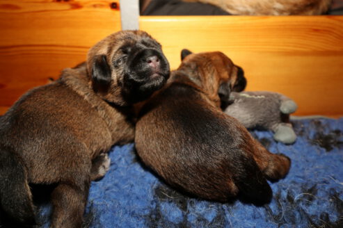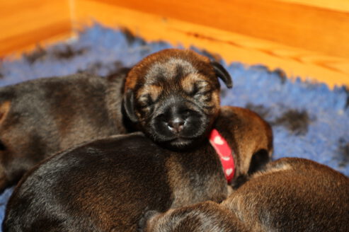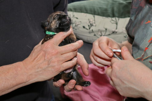 De puppy’s groeien als kool. Ze zijn nu meer dan drie keer hun geboortegewicht. Ze doen dan ook erg hun best bij het drinken. Rosie heef tien werkende tepels, dus de pups hebben het voor het uitzoeken.