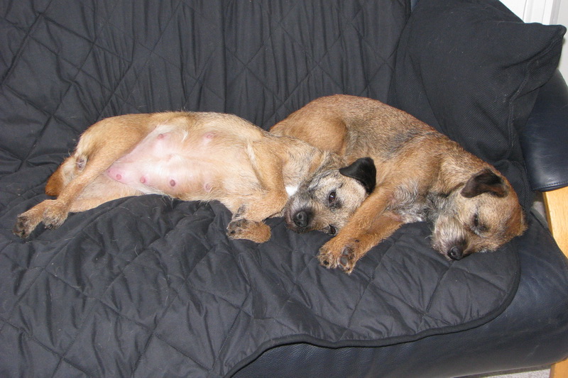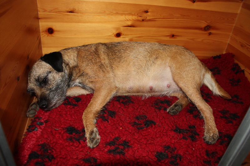 Op de foto is het niet te zien, maar we vinden wel dat de buik van Ivy wat zachter wordt en dat de melkklieren wat groter worden. Ivy slaapt veel en is vooral in huis heel rustig. Naar het bos wil ze altijd nog wel.