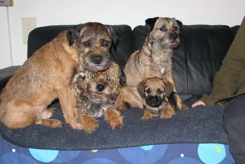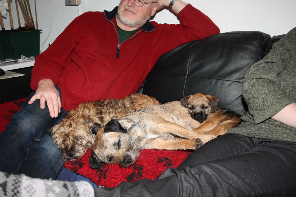 OP de bank met Puk, Fudge en Ivy (januari 2014)