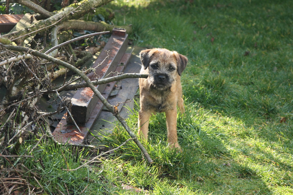 Lewis leeft zich uit in de tuin bij Lene en Ole in Denemarken (5 maart 2023)