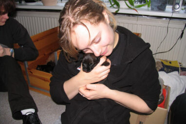 We slapen ’s nachts niet meer beneden, maar komen er midden in de nacht nog wel uit om Vesta uit te laten en nog wat te eten te geven. We hebben een intercom bij de kist staan zodat we horen wat er beneden gebeurt.