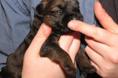 “Wat zijn ze nog klein!”. Alle toekomstige puppy-eigenaren zijn nu op bezoek geweest en allemaal hebben ze dezelfde reactie. Op de foto’s hier op de website komen de pups groter over dan ze in werkelijkheid zijn. Daarom deze keer ook een paar foto’s met Vesta er bij, zodat de verhoudingen goed te zien zijn.