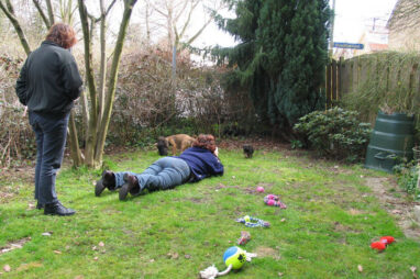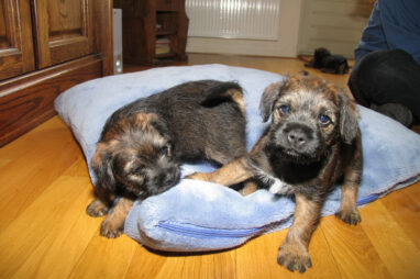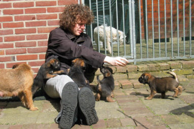 Terug thuis zijn ze toch wel moe geworden van alle nieuwe ervaringen. Ze gaan lekker slapen maar zijn toch attent als je weer bij de kennel komt om foto’s te maken. Als ze uitgeslapen zijn gaan ze weer heerlijk spelen en tot nu toe hebben ze helemaal geen last van de enting.