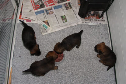 Zondag was een drukke dag voor de pups. Veel bezoek, wat wel heel goed is voor de socialisatie van de pups, maar het is ook heel vermoeiend voor ze. En ook Fudge raakt wat van slag. Ze geeft bijna nooit melk als er bezoek is, dus het ritme veranderd dan een beetje. Maar ook dat moeten ze leren. En gelukkig hebben we hele leuke nieuwe eigenaren voor de pups, dus het is wel heel gezellig.
