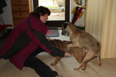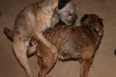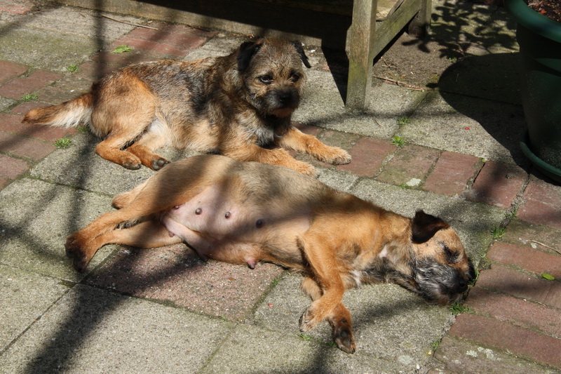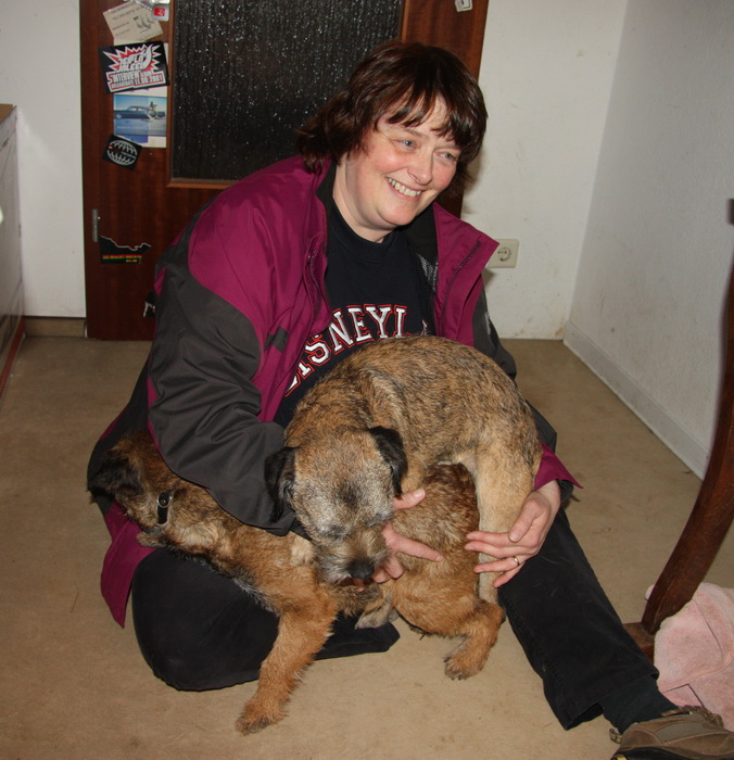 Vrijdagmiddag 2 maart zijn we met de camper naar Duitsland vertrokken. We vermoedden dat Fudge niet eerder dan zondag dekrijp zou zijn, dus we hoefden ons niet te haasten en hebben zaterdag en zondagochtend nog heerlijk door de Eifel getrokken. Zondagmiddag zijn we voor het eerst bij Freddie in Remagen langs gegaan. Fudge wist precies waar ze was en trok ons werkelijk het tuinpad op naar de voordeur. Het klikte gelijk weer tussen Fudge en Freddie en ze hadden een hoop lol met elkaar, maar zich laten dekken wilde Fudge nog niet. Na een half uurtje vonden wij het wel genoeg, morgen was er weer een dag.