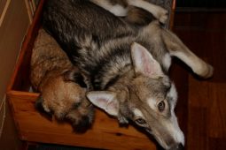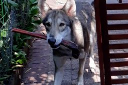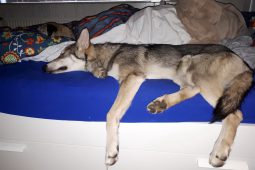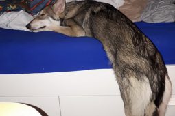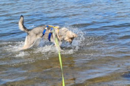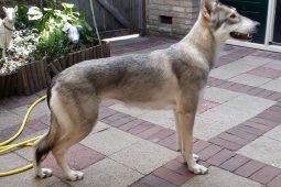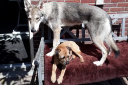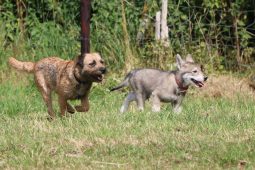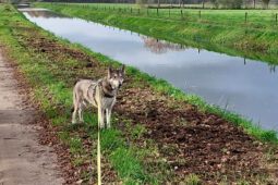 Jaggu is inmiddels alweer bijna 2 ½ jaar bij ons. Ze is opgegroeid tot een grote lieve knuffel voor ons en ze is een prachtige Saarlooswolfhond. In ons roedeltje Borders past ze uitstekend. Ze is gek op wandelingen in de natuur. En ze vindt het heerlijk om door ondiep water te lopen en te spelen.