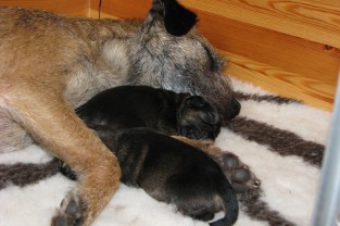 Ivy en haar pups doen het heel erg goed. Ivy is een hele lieve moeder, die haar pups heel goed verzorgd. Ze is ook heel erg trots op haar kroost, zoals een goed moeder betaamt. De pups drinken goed en zijn allemaal in gewicht toegenomen.