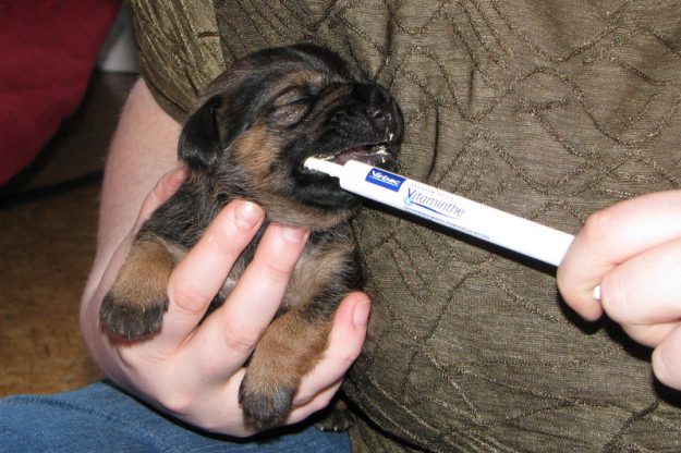 De pups zijn voor de eerste keer ontwormd. Echt lekker vonden ze de wormenpasta niet, maar gelukkig deden ze er niet al te moeilijk over. Ook Ivy had er weinig moeite mee; als Marloes het doet zal het wel goed zijn.