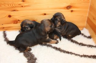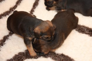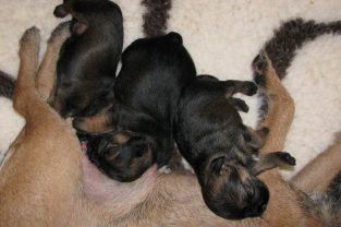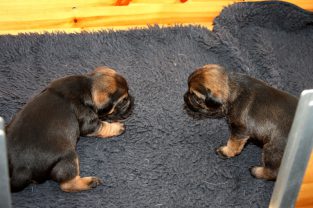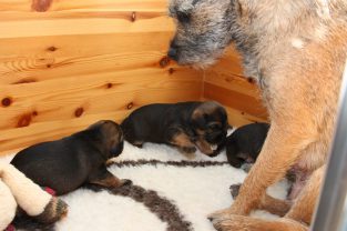 We zijn nu aan het einde van de derde week en het is fantastisch om te zien hoe snel de ontwikkeling van de pups nu gaat. Waren ze aan het begin van de derde week nog vrij hulpeloos, nu lopen ze echt door de bak heen en spelen met elkaar en met Ivy. We proberen alles op foto vast te leggen, maar ze zijn al bijna te snel geworden!