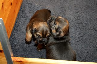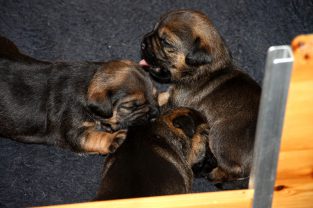 Er komt nu steeds meer beweging in de pups. Het is ongelofelijk hoe snel ze zich ontwikkelen. Het lopen gaat steeds beter, al is het af en toe nog wel vallen en weer opstaan. Maar het zijn volhoudertjes! Ook spelen ze nu met elkaar. Happen, duwen, met de poten werken. elkaar omduwen. Het is heerlijk om naar te kijken. En ook om naar te luisteren, want ze maken er prachtige “woeste” geluiden bij.