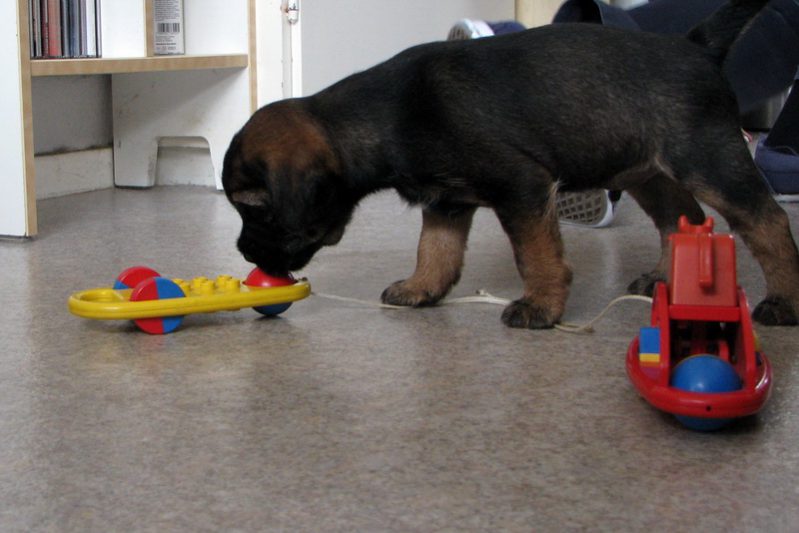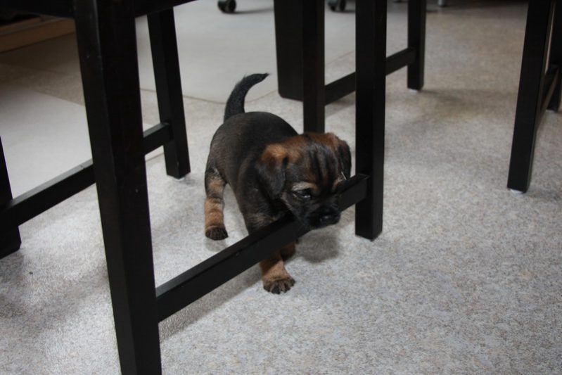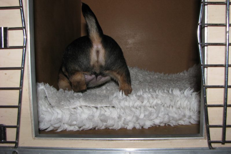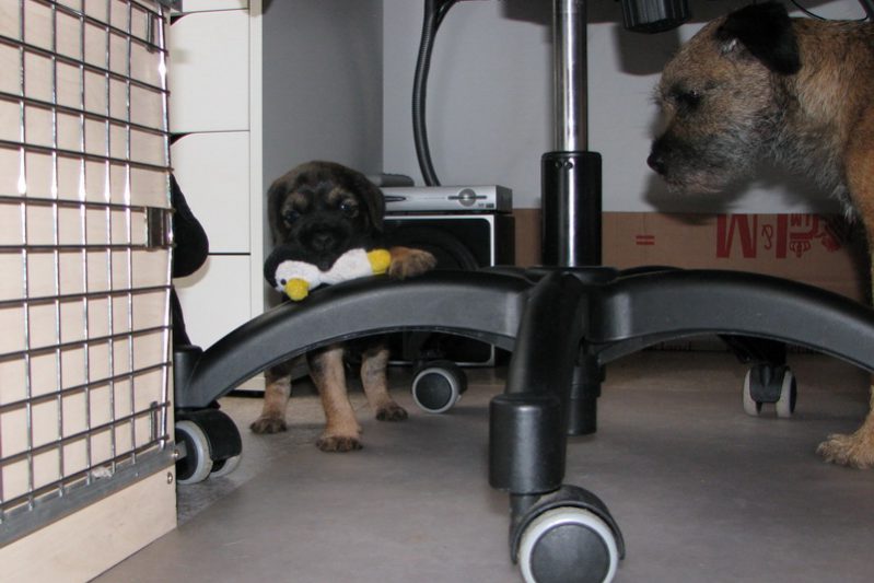 De pups spelen nu al een week regelmatig in de woonkamer en ze blijven nieuwe dingen ontdekken. Zo kwamen ze er vandaag achter waar mama en oma slapen. Dat moest natuurlijk uitgebreid onderzocht worden. En Ivy liet nog even zien hoe zij altijd in de bench ligt.