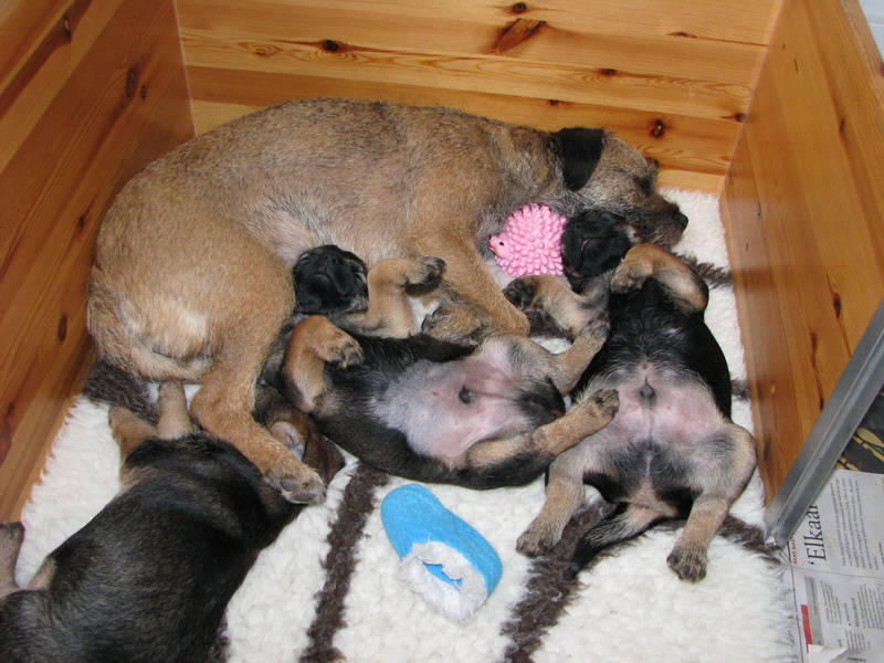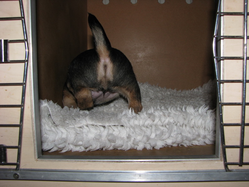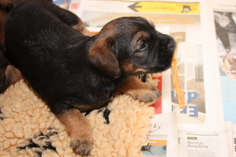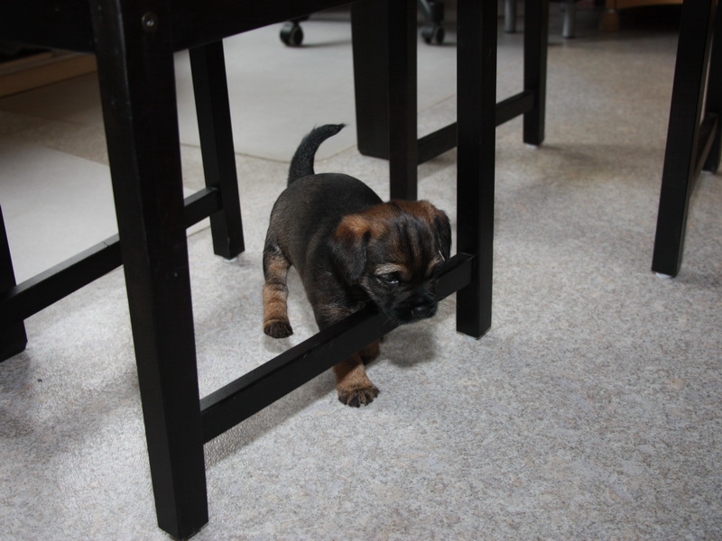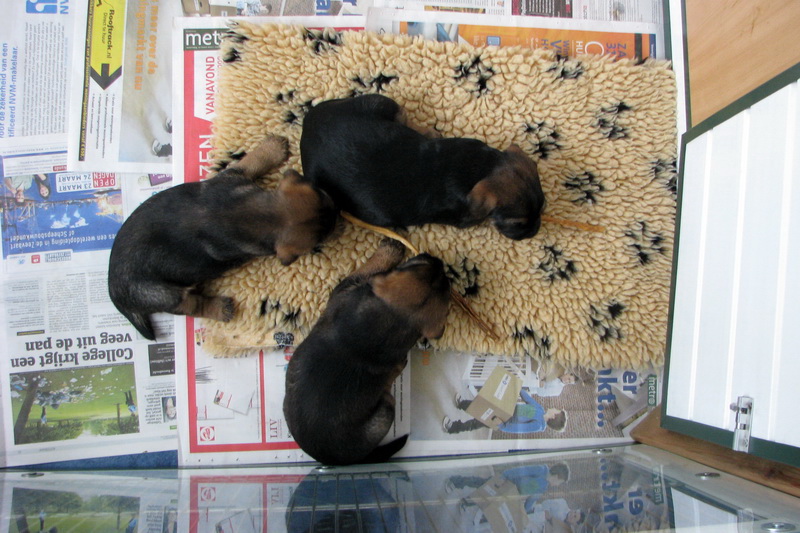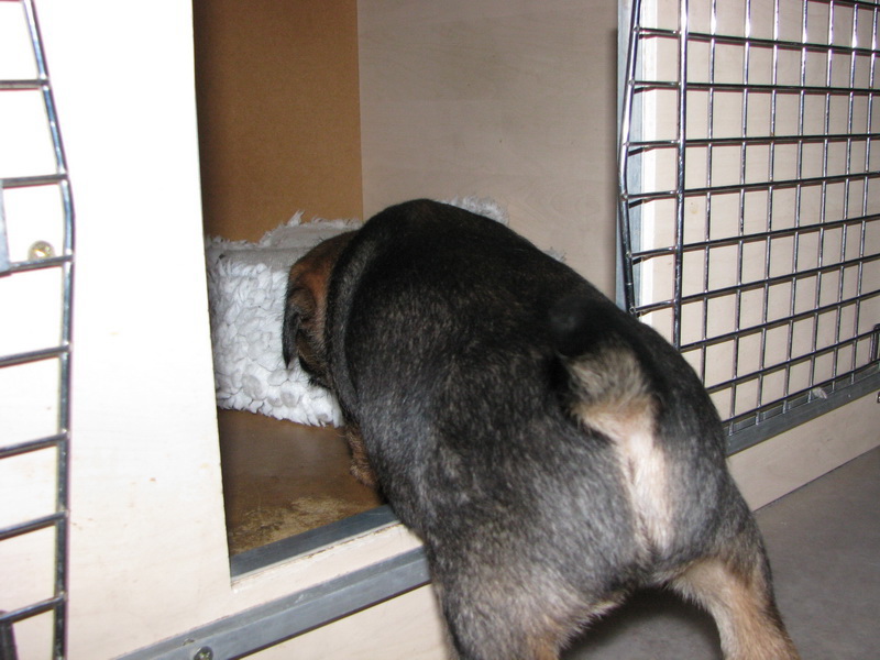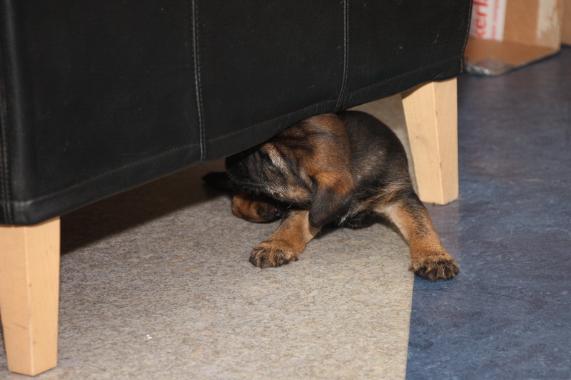 De pups spelen nu al een week regelmatig in de woonkamer en ze blijven nieuwe dingen ontdekken. Zo kwamen ze er vandaag achter waar mama en oma slapen. Dat moest natuurlijk uitgebreid onderzocht worden. En Ivy liet nog even zien hoe zij altijd in de bench ligt.