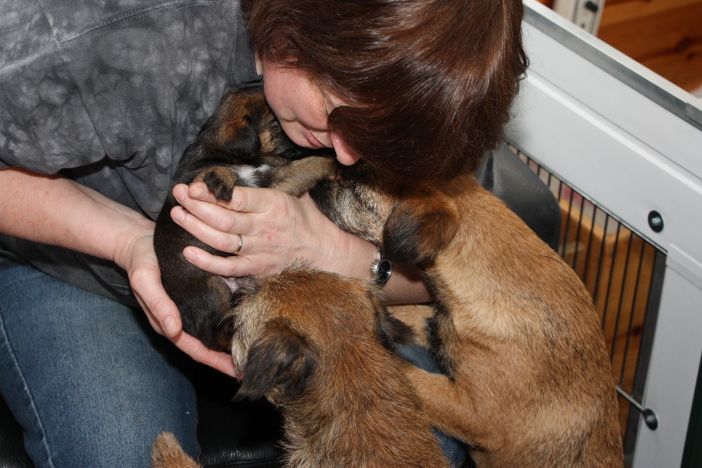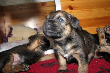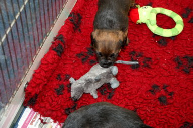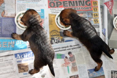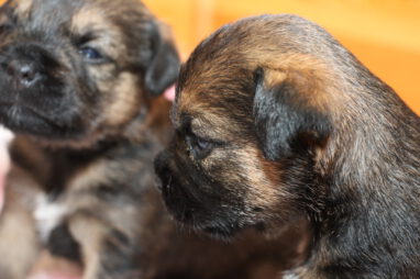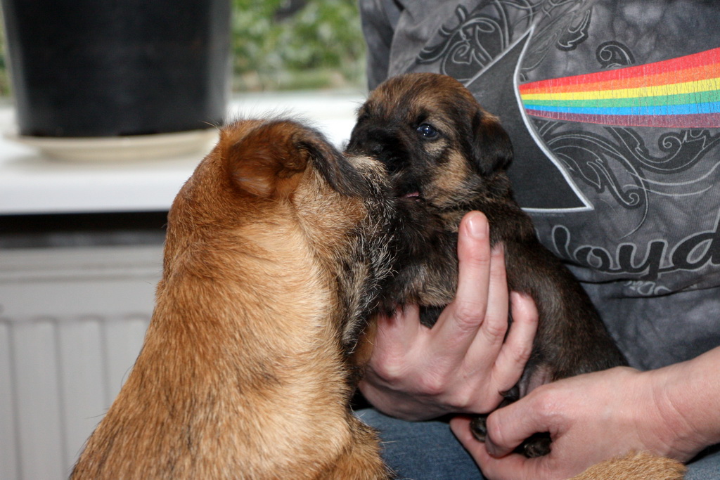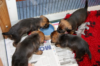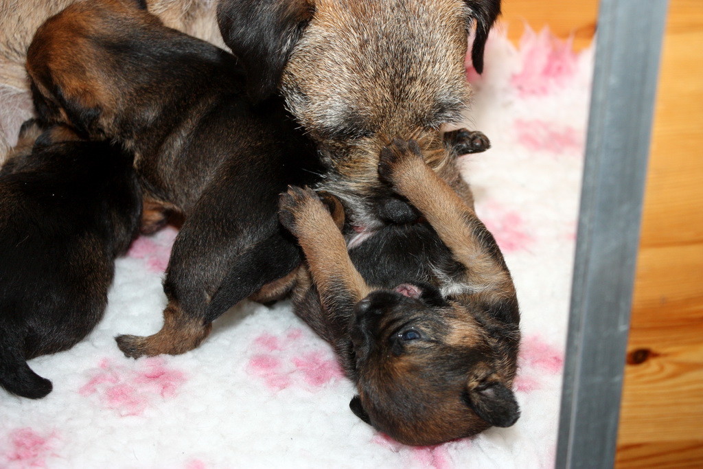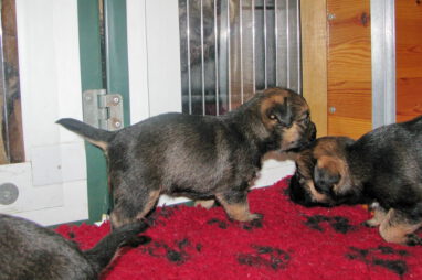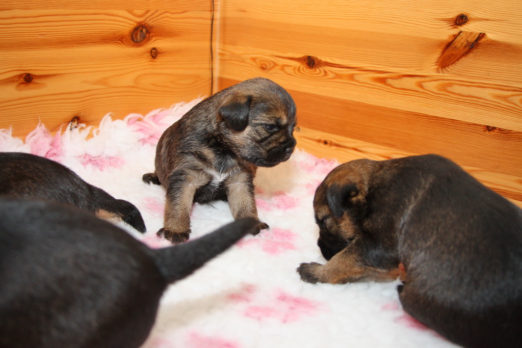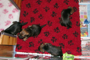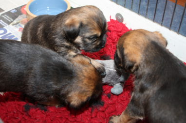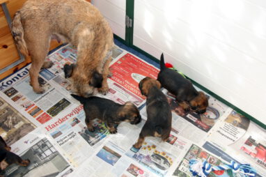 De pups worden steeds actiever en kunnen hun bewegingen steeds beter coördineren. Ze zitten en lopen en ook maken ze al behoorlijk veel geluid. Het is prachtig om te zien en te horen hoe ze met elkaar spelen.