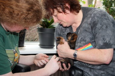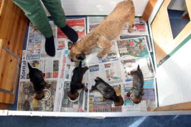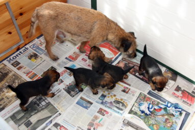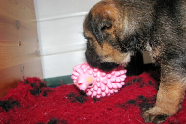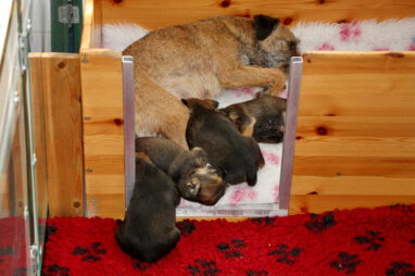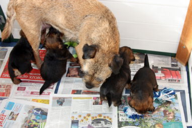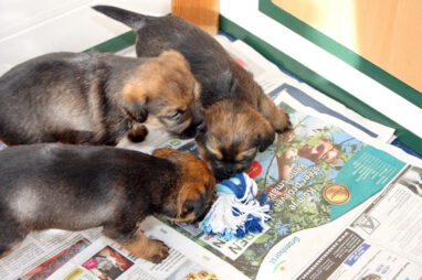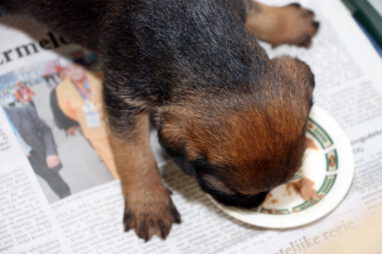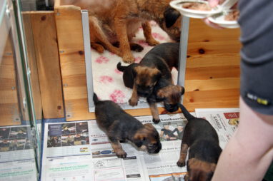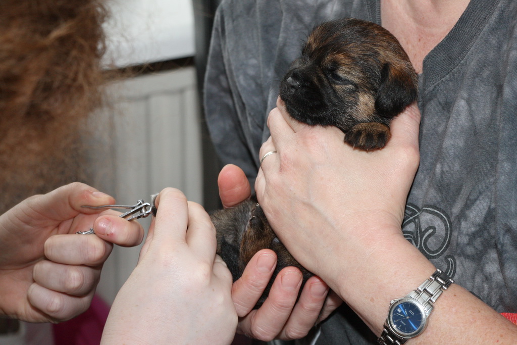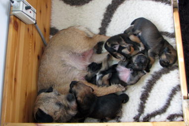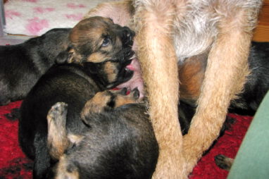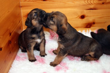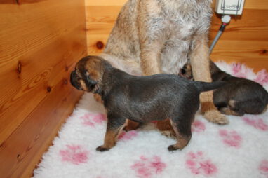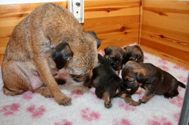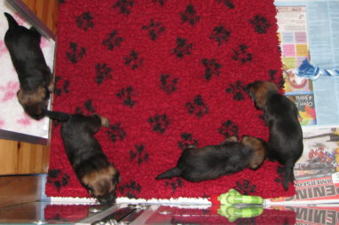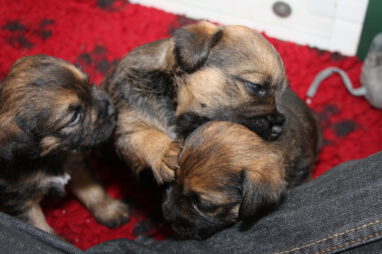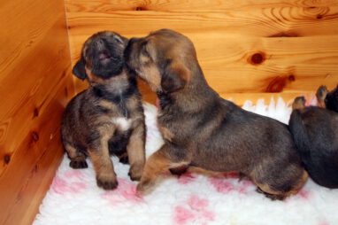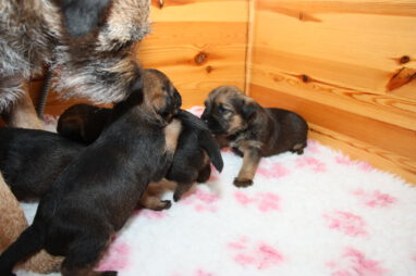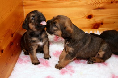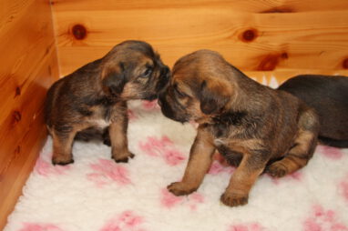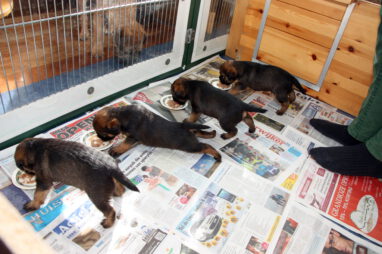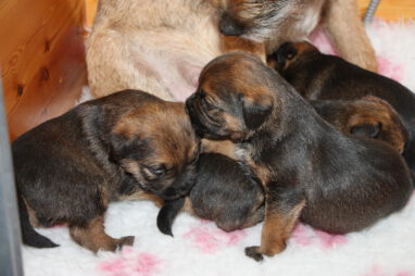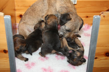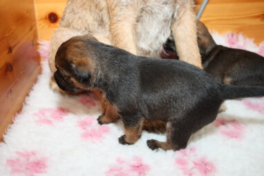 De pups worden steeds actiever en kunnen hun bewegingen steeds beter coördineren. Ze zitten en lopen en ook maken ze al behoorlijk veel geluid. Het is prachtig om te zien en te horen hoe ze met elkaar spelen.