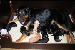 In 2004 hebben we een nest gefokt met Lara. Ook hier vielen we in de prijzen, ze kreeg maar liefst dertien pups. Ze is daarmee de enige Nederlandse Hovawart die op natuurlijke manier dertien pups heeft gekregen, die ook allemaal in leven zijn gebleven. Alle dertien pups zijn opgegroeid tot mooie, gezonde Hovawarts.