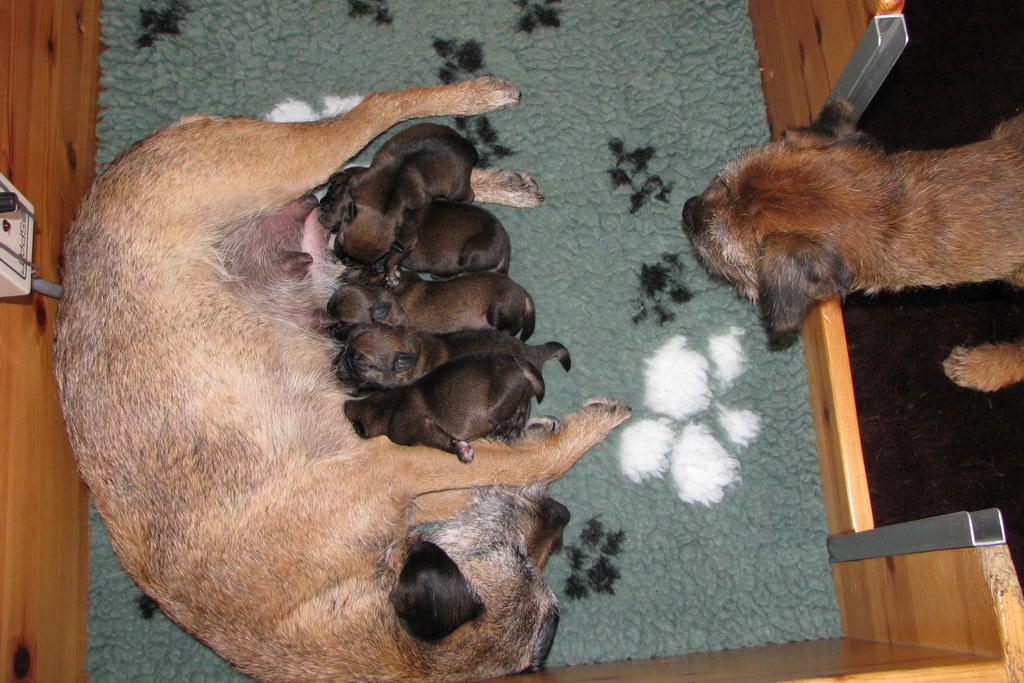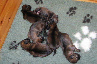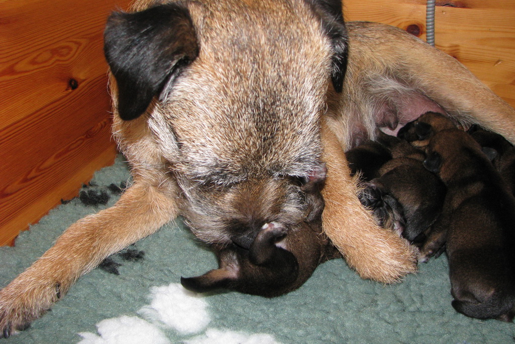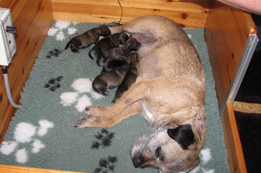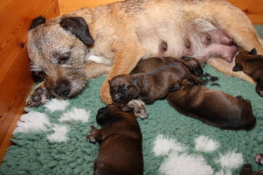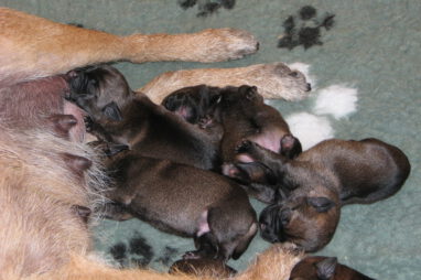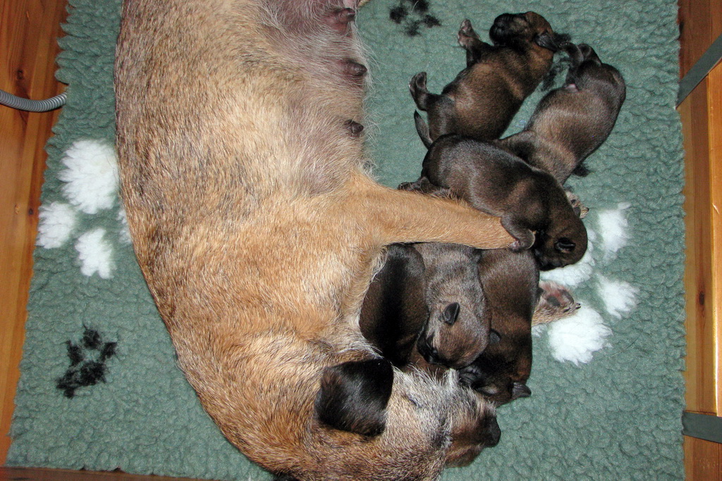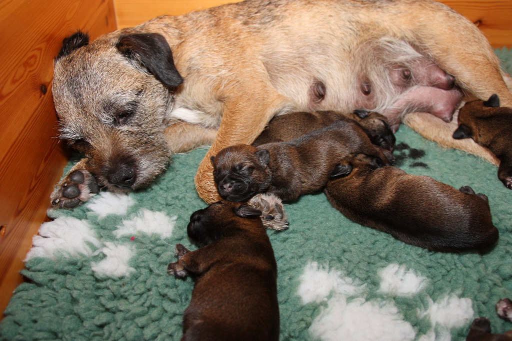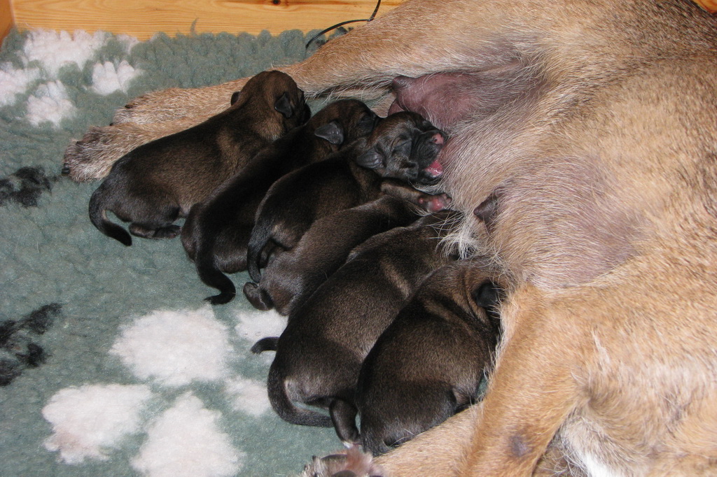 Het gaat heel goed met Ivy en haar kroost. Ivy voelt zich uitstekend en zorgt fantastisch voor de pups. Wij hebben er nauwelijks omkijken naar.