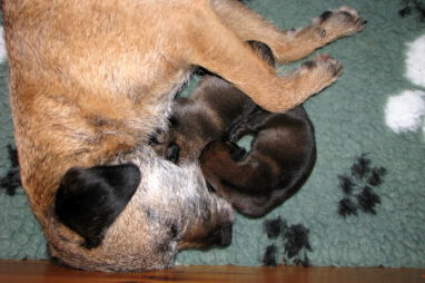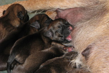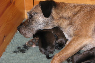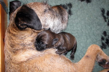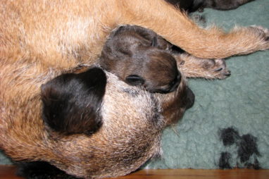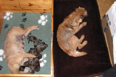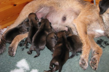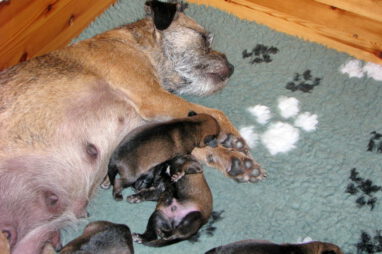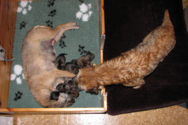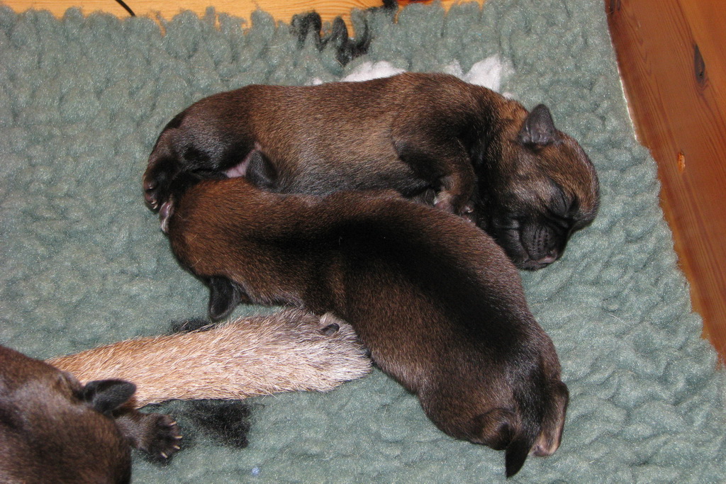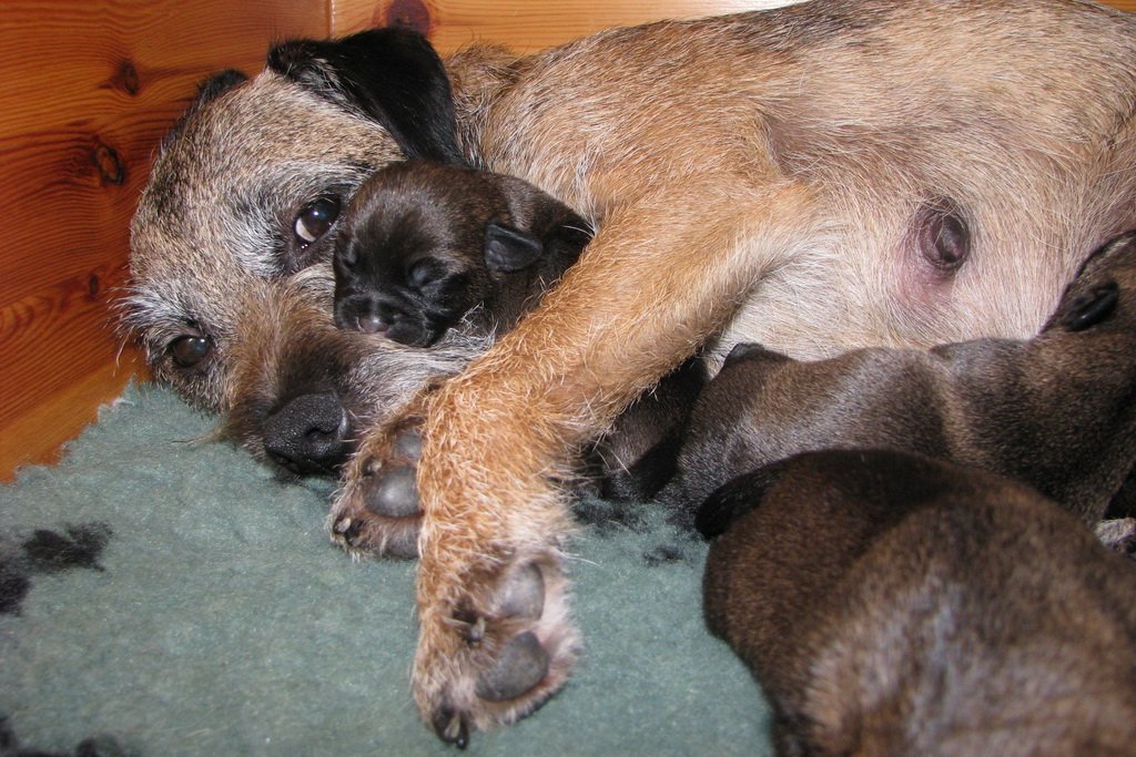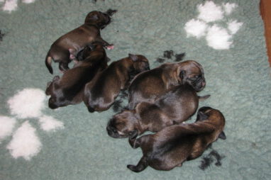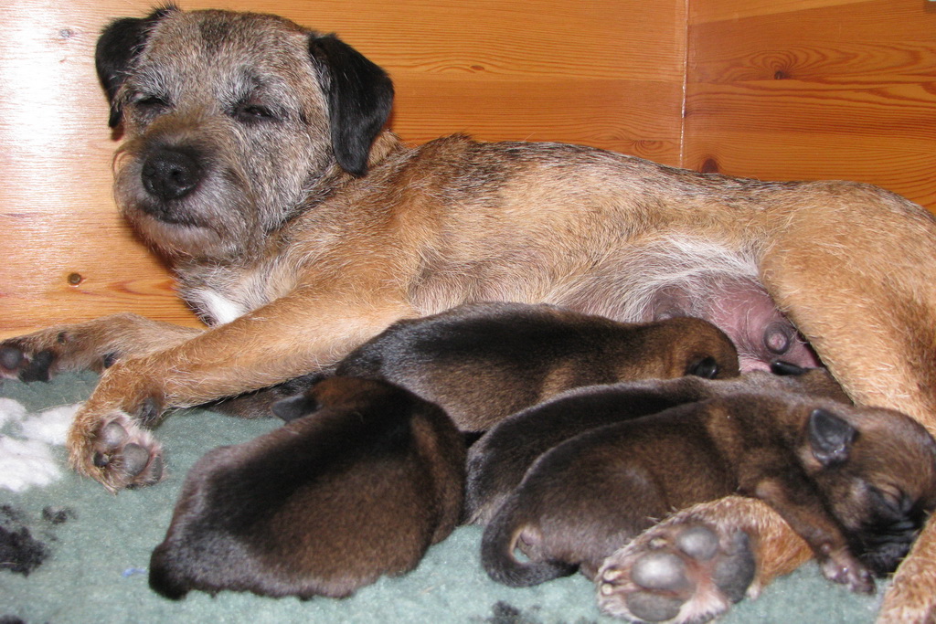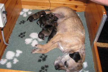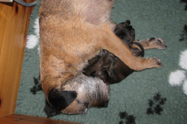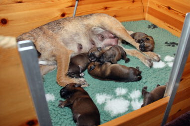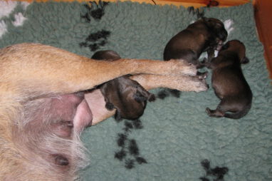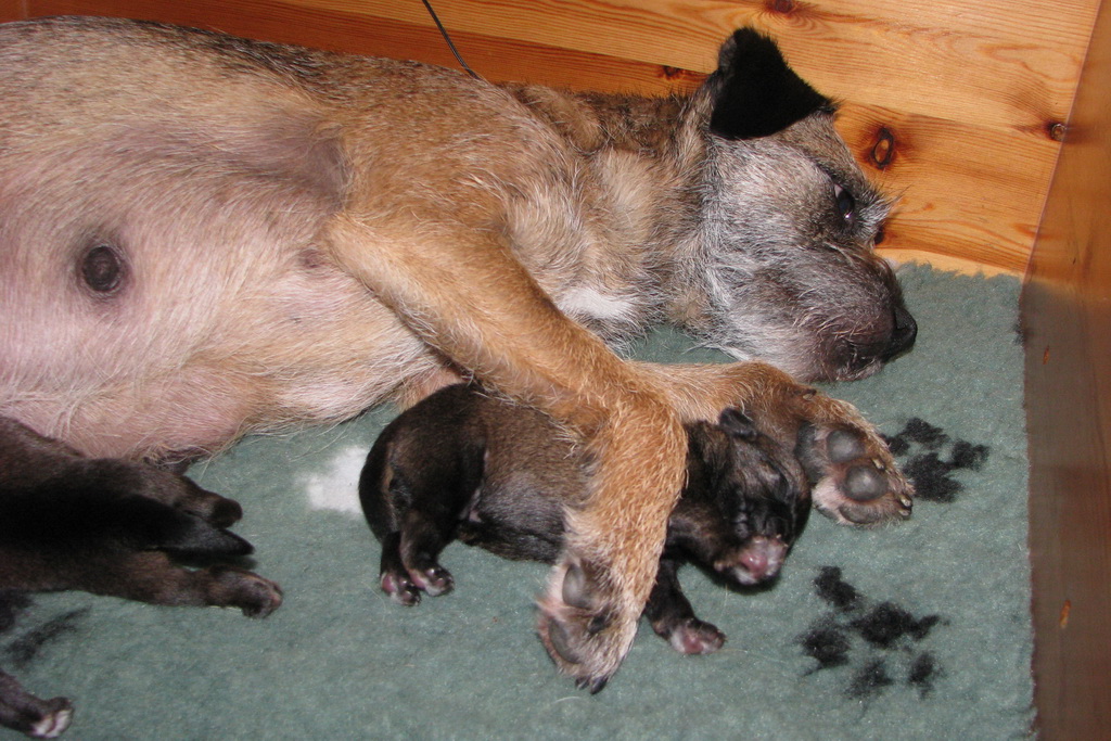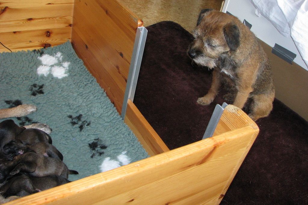 Het gaat heel goed met Ivy en haar kroost. Ivy voelt zich uitstekend en zorgt fantastisch voor de pups. Wij hebben er nauwelijks omkijken naar.