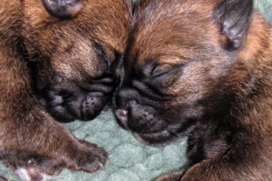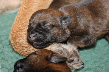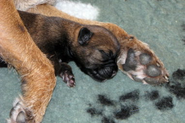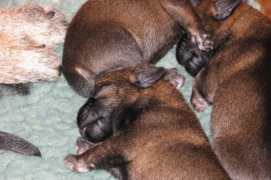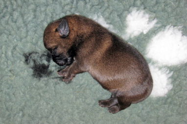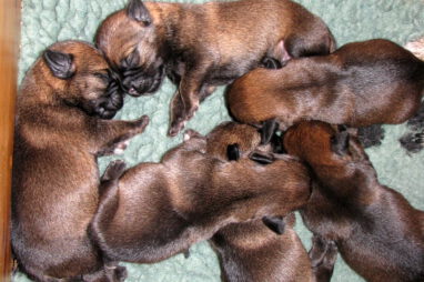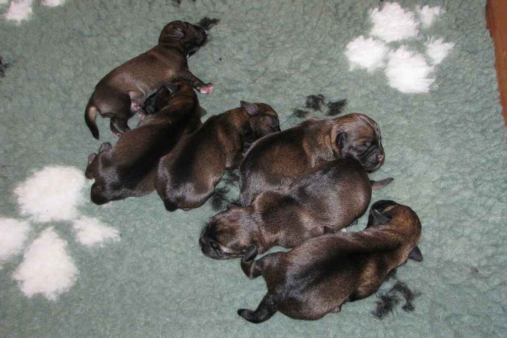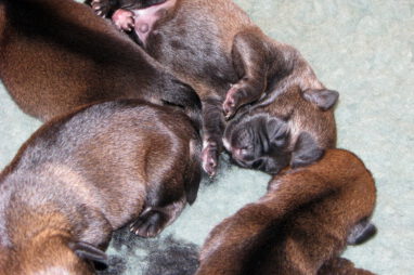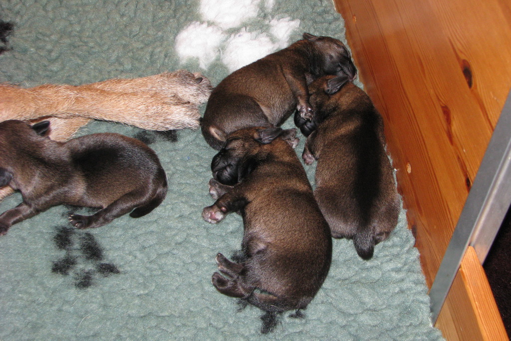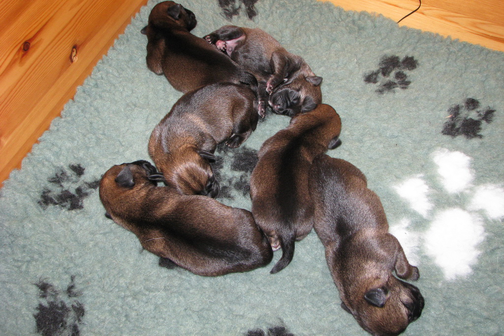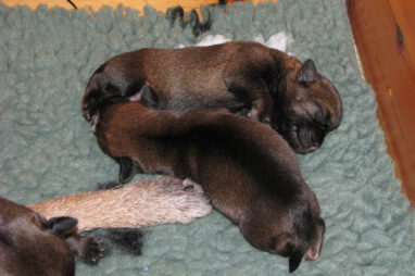 De eerste week gebeurt er niet zo veel. De pups zijn nog blind en doof en vullen de tijd met eten en slapen. Ze groeien goed, Ivy heeft gelukkig melk voor zes!