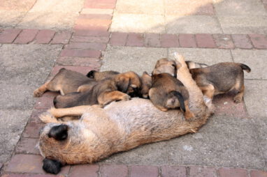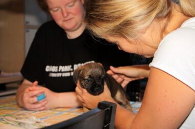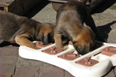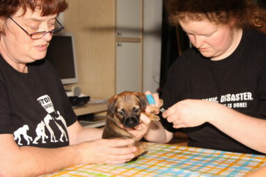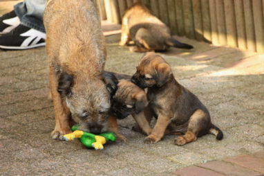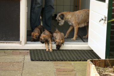 We verbazen ons er over hoe snel de tijd gaat. Nog een week en de pups gaan al naar hun nieuwe baasjes toe. En die verheugen zich daar heel erg op. Zij zijn ook allemaal drie of meer keren komen kijken en iedereen krijgt een pup die goed bij ze gaat passen.