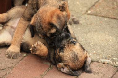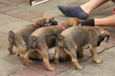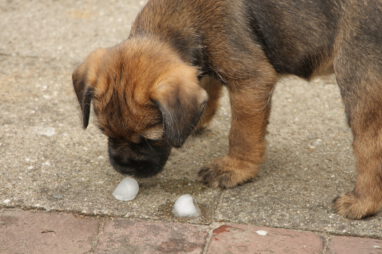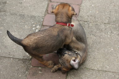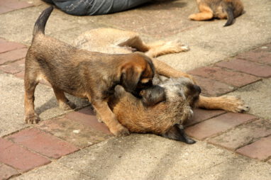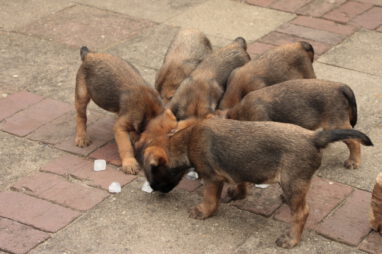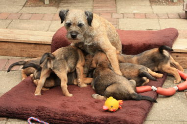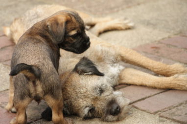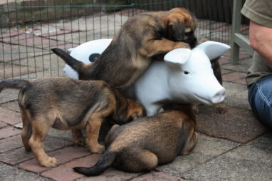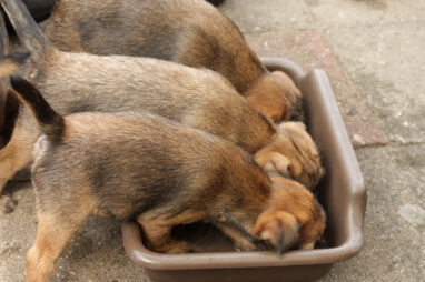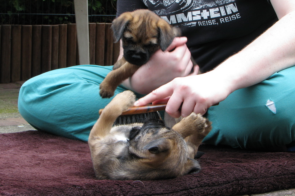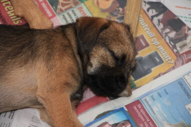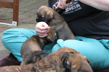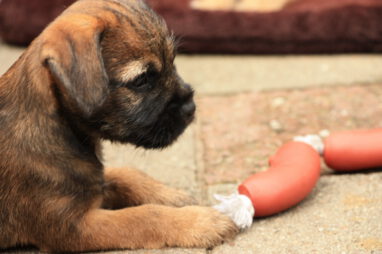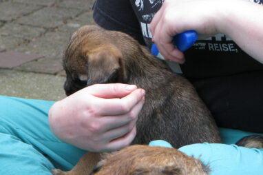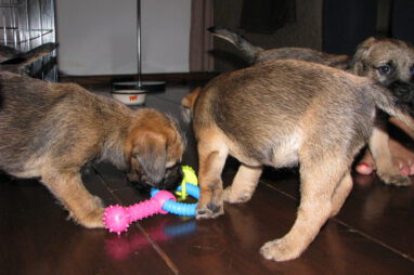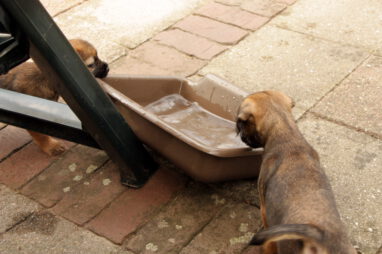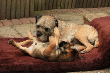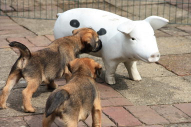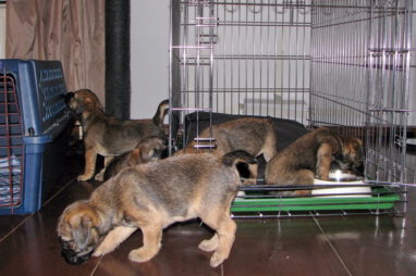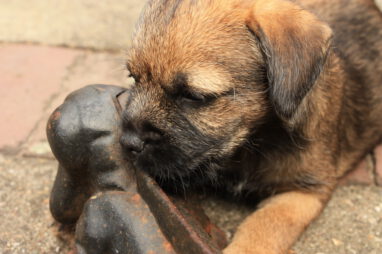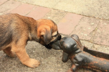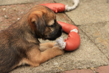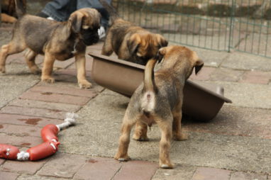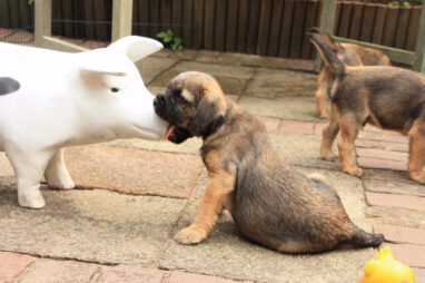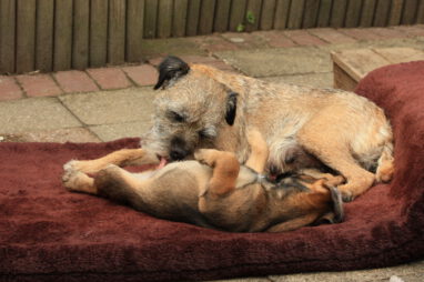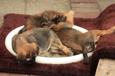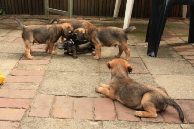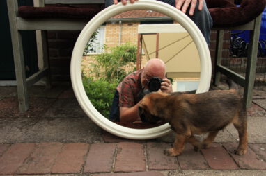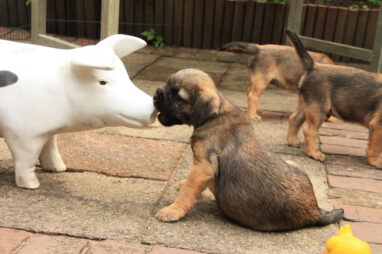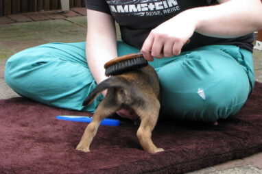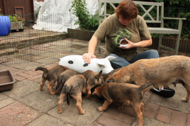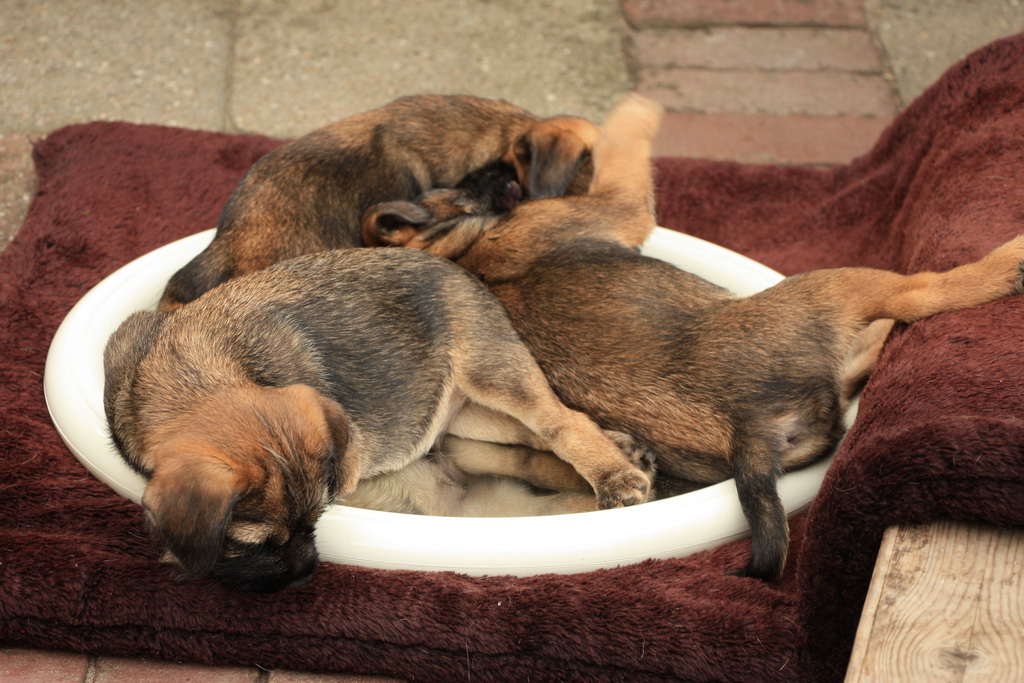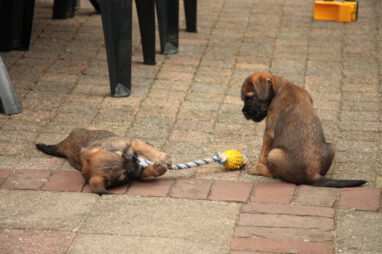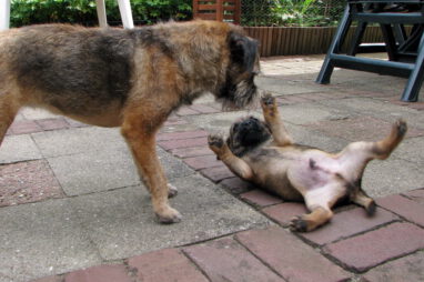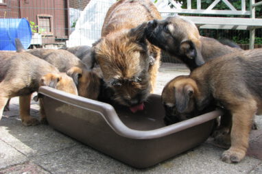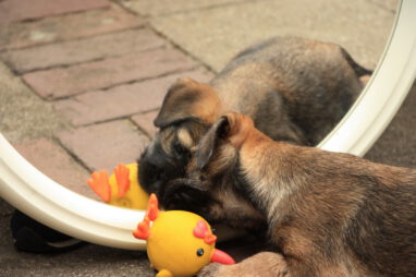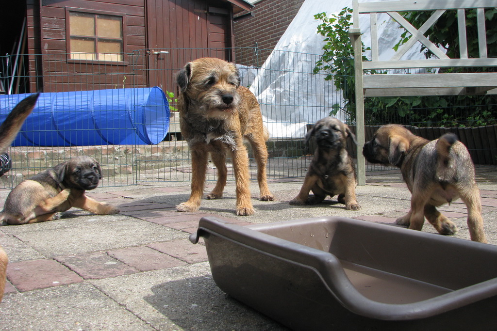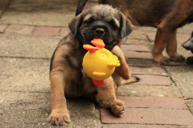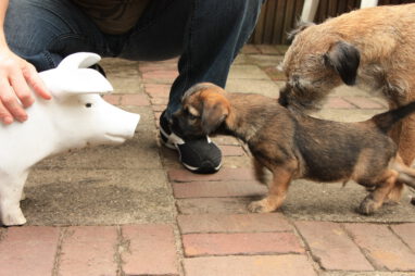 De bench en het speelgoed zijn in ieder geval goedgekeurd en het grote hondenkussen is super! Kennismaking met zijn nieuwe huisgenoten (twee katten) is uitgesteld tot Marlow definitief verhuisd. Daar zal hij nog van opkijken!
