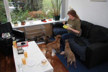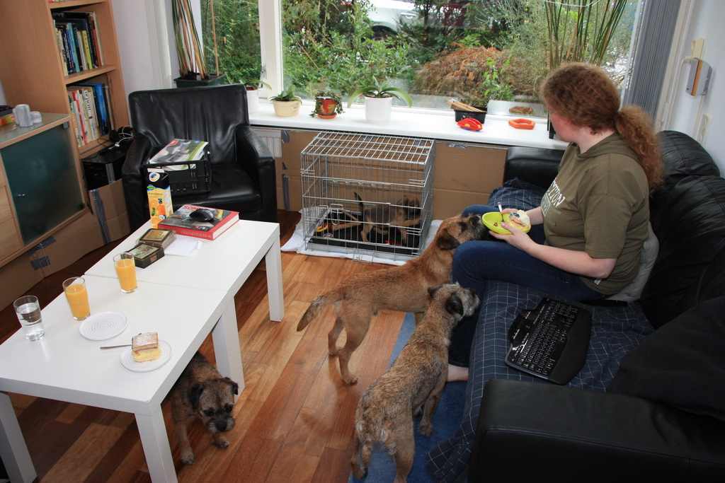 Eenmaal aangekomen gingen ze gelijk de woonkamer inspecteren (Marlow moest natuurlijk eerst zijn nieuwe baasje gedag zeggen).
