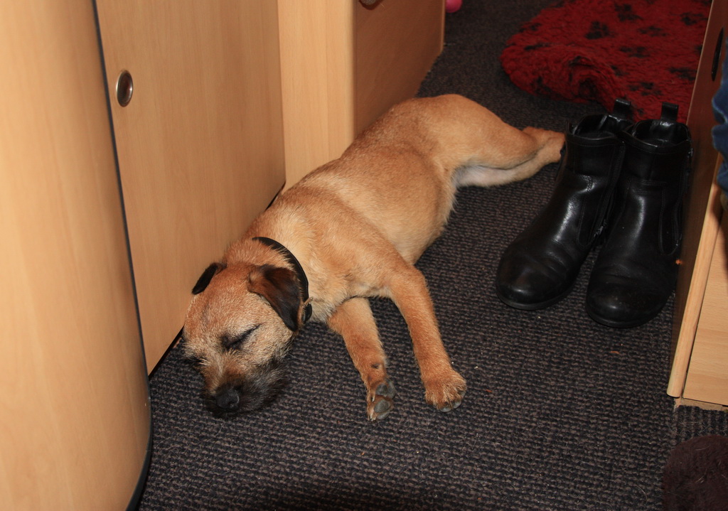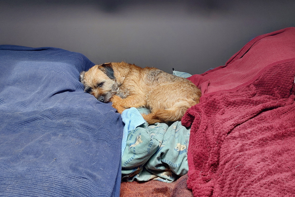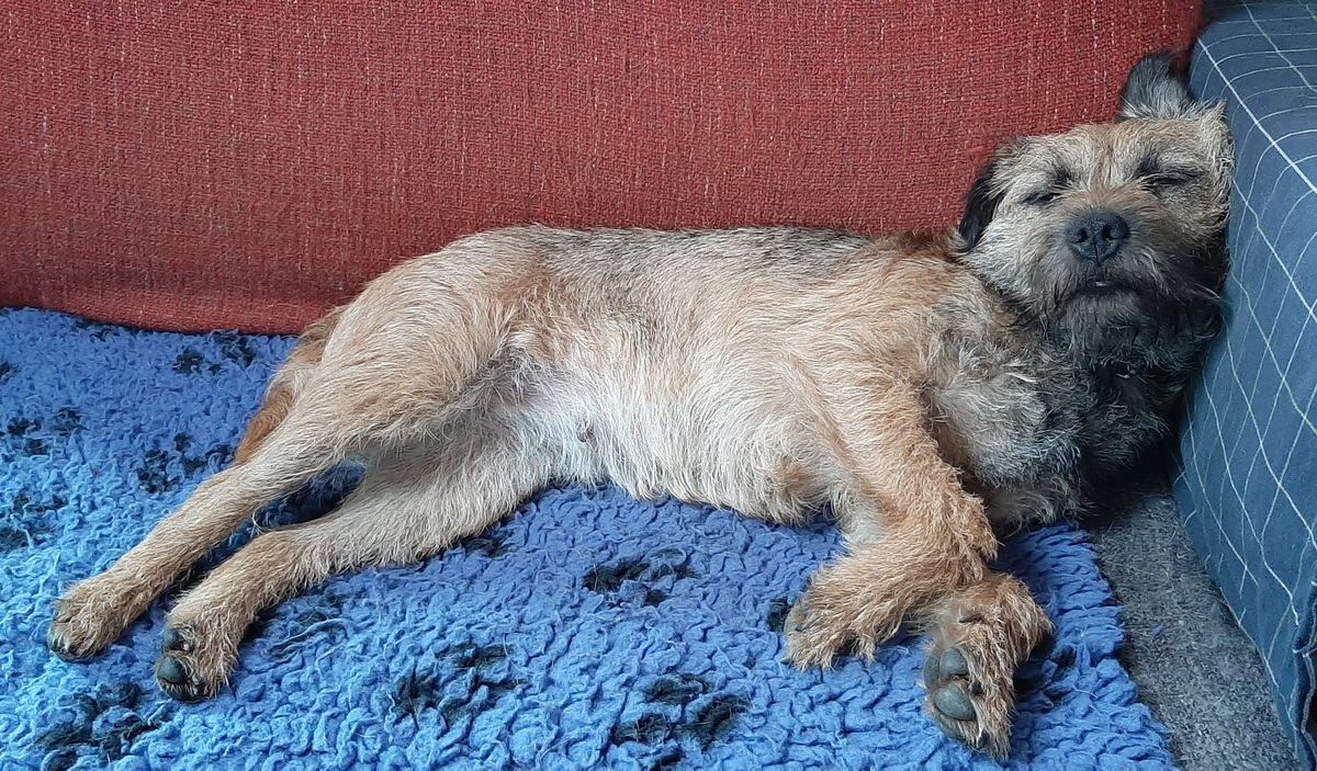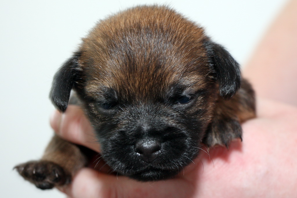 Jane is de stamhoudster van onze Mountain Dew Border Terriërs. Op 28 oktober 2017 heeft Jane haar eerste nest gehad, het Mountain Dew N-nest. Op 16 november 2019 is het Mountain Dew O-nest geboren. Het derde nest van Jane, het Mountain Dew Q-nest, is geboren op 5 februari 2021. Dit is ons grootste Border Terriër nest tot nu toe: 4 reutjes en 3 teefjes.
