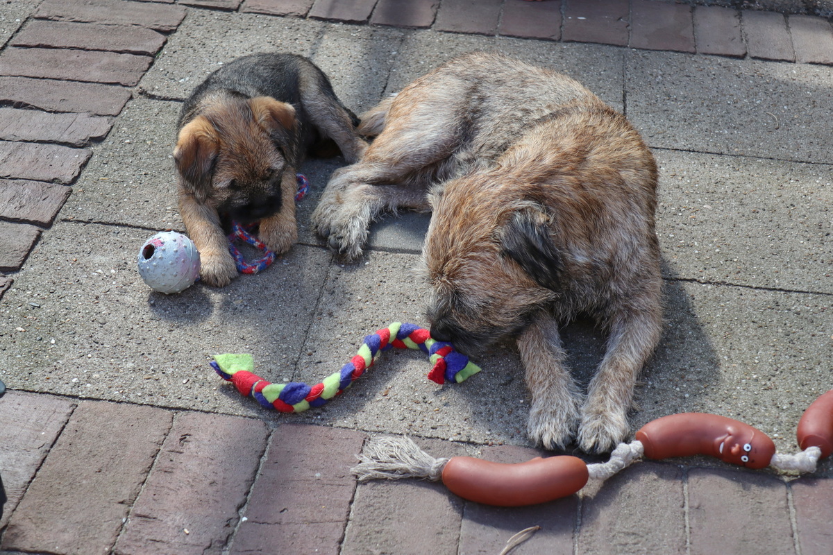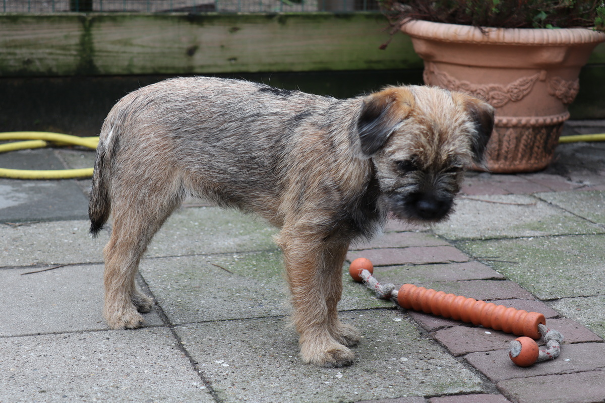 Sybil is in verhouding een klein hondje, zeker in vergelijking met Lewis. Maar ze heeft juist de ideale maat voor een Border Terriër. Zo horen ze te zijn. En dat is ook iets waar wij naar streven.