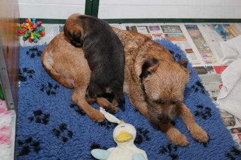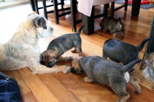 Oma Ivy kan niet stil zitten en komt vaak helpen. Ze verzorgt de pups, haalt ruziënde pups uit elkaar of ligt er soms lekker bij als Jane de pups melk aan het geven is. Soms lijkt het wel of de pups twee moeders hebben.