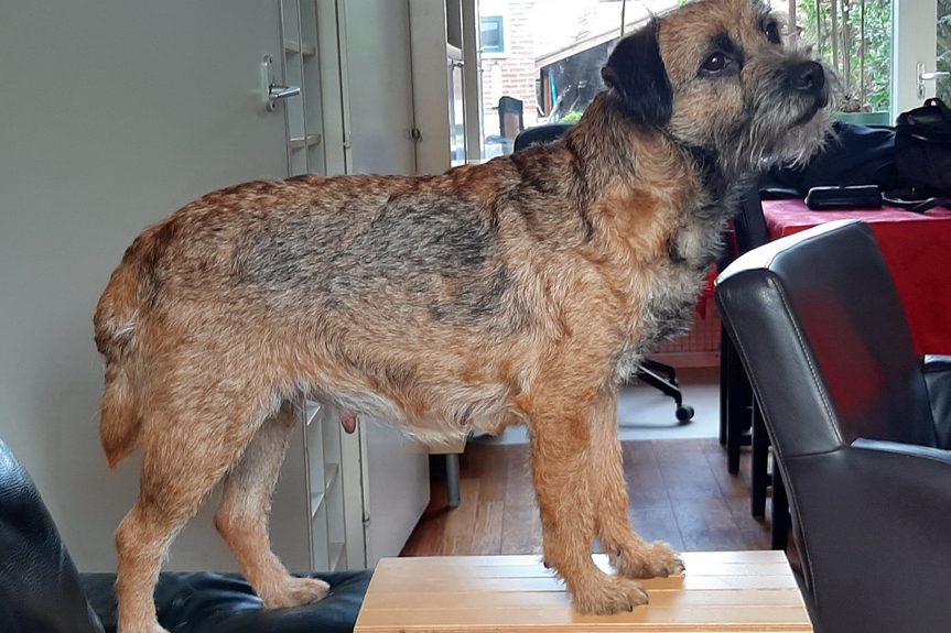 Mette woont in de buurt van Hannover op een boerderij. Hij leeft daar zoals de Border Terriër bedoeld is. Hij loopt lekker vrij op het erf, houdt dit vrij van ongedierte en gaat mee op jacht. Hij heeft daarvoor ook de nodige diploma’s gehaald. Een echte werkhond dus. Mette is van karakter een hele open, vriendelijke en relaxte hond. Dat hebben we ondervonden toen we hem in juni zijn gaan opzoeken om kennis te maken, wat heel goed verliep.