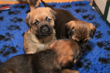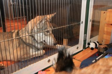 … dat is wat we allemaal doen. De pups genieten van elkaar en wij genieten van de pups. Ook Jaggu en Hestia genieten, weliswaar op afstand door de tralies, maar ook dat vinden ze leuk.