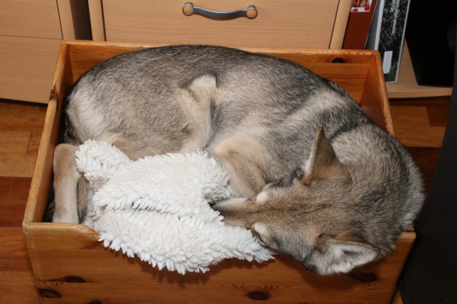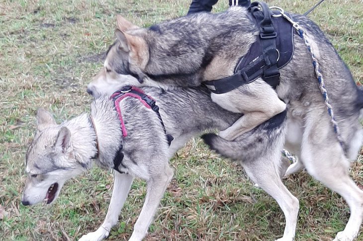 Bij haar vorige loopsheid was Jaggu wel gedekt, maar niet drachtig geworden. In december, 8 maanden later, is Jaggu weer loops geworden. In overleg met de vereniging NVSWH hebben we een geschikte reu gevonden: Malek van de Wolfsdreuvnik. Het klikte direct tussen Malek en Jaggu. Ze speelden fanatiek met elkaar en Malek deed erg zijn best om een dekking tot stand te brengen. De eerste dag lukte dat nog niet, de dag daarna is het tot een dekking gekomen.