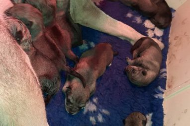 In de nacht van 26 op 27 februari 2020 heeft Jaggu maar liefst negen pups op de wereld gezet, zes reuen en drie teven.