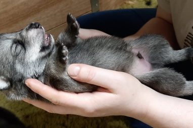 Heel langzaam beginnen de oogjes te kieren. Over een paar dagen zullen ze wel opengaan. Ook gaan binnenkort de oren open. De pups kunnen dan kijken en horen. Er zijn er ook al een paar die op hun pootjes gaan staan en proberen te lopen. In vergelijking met Border Terriër pups zijn de Saarlooswolfhonden pups sneller in hun ontwikkeling. Op de vachtjes begint al dekhaar te komen. De pups groeien goed en zijn allemaal heel tevreden.