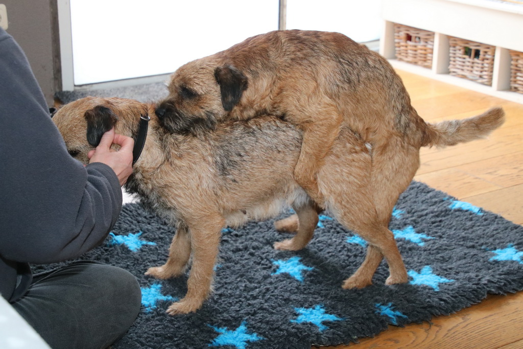 Jane besloot dat het op 5 december tijd was om gedekt te worden, een Sinterklaas surprise voor Bluff! Bij de eerste ontmoeting klikte het gelijk. Na heel even spelen bleef Jane als een blok staan. Bluff rende nog wat rondjes om Jane heen en greep toen zijn kans. Binnen enkele minuten hadden we een dekking, die volgens het boekje verliep.