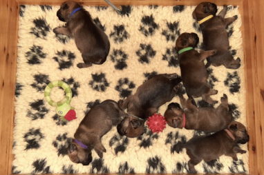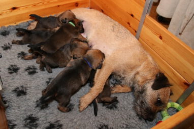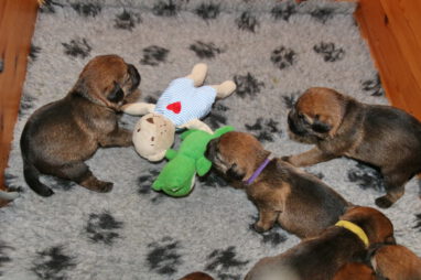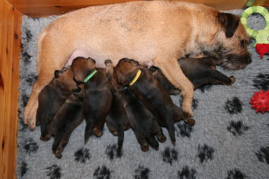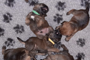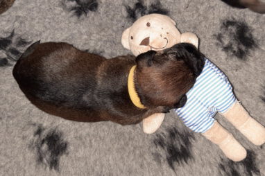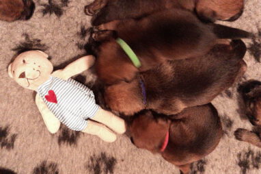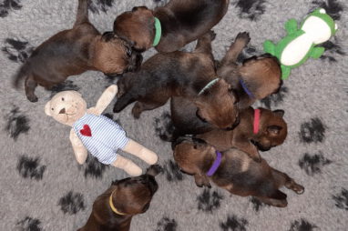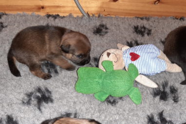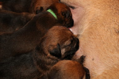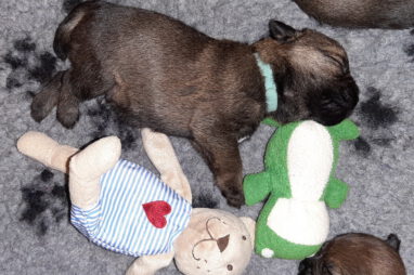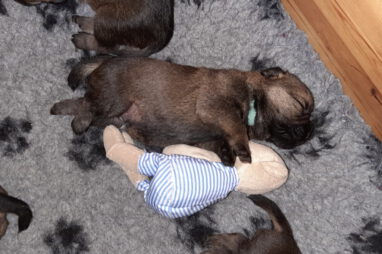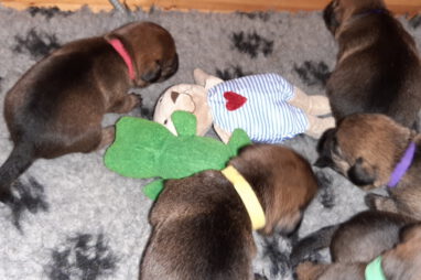 Ook in de derde week is het belangrijkste voor de pups eten en slapen. En beide doen ze erg goed!