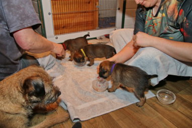 We zijn alweer over de helft van de tijd dat de pups bij ons zijn. Het gaat altijd zo snel. Je ziet steeds meer verschil in de hondjes, het worden nu echte persoonlijkheidjes, . En ze zijn allemaal leuk!