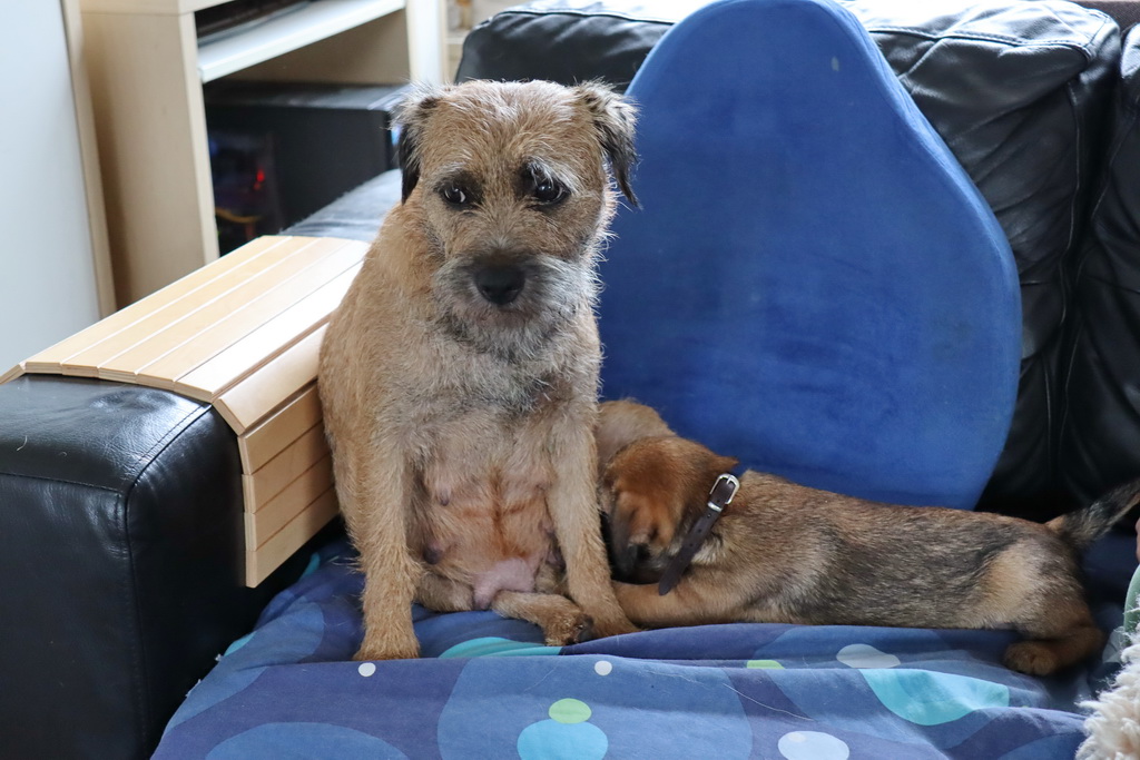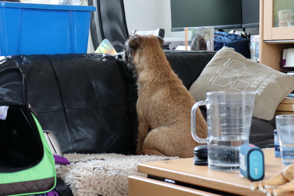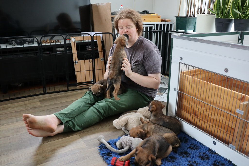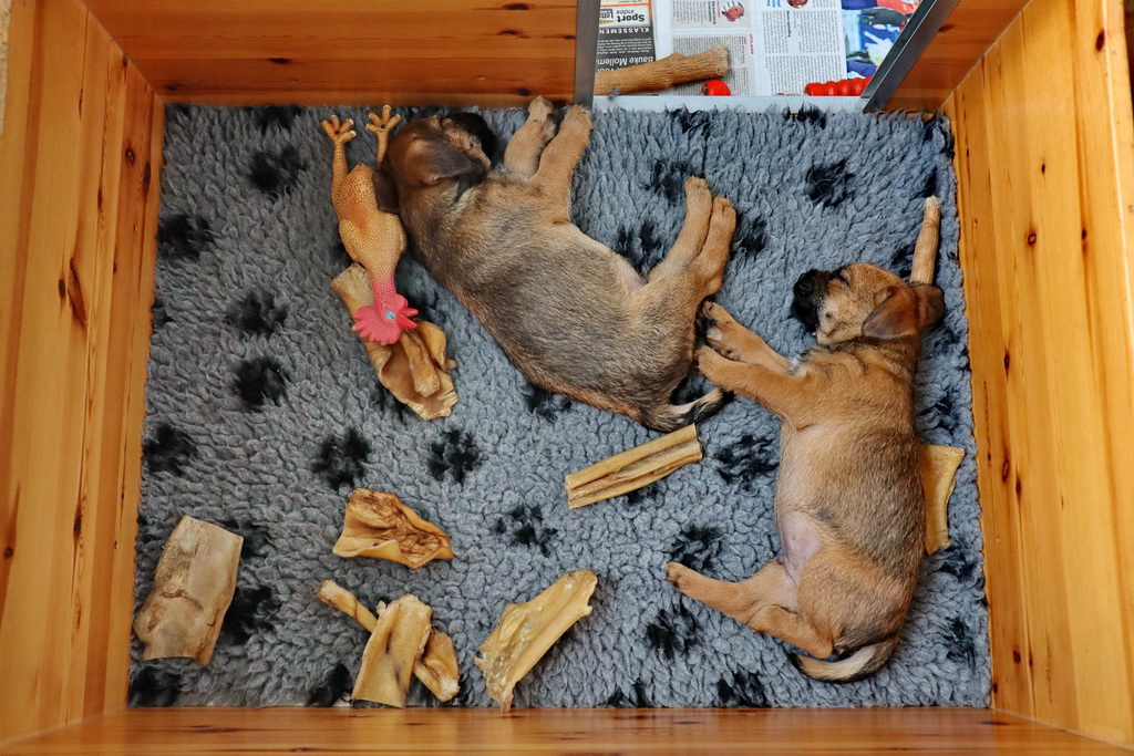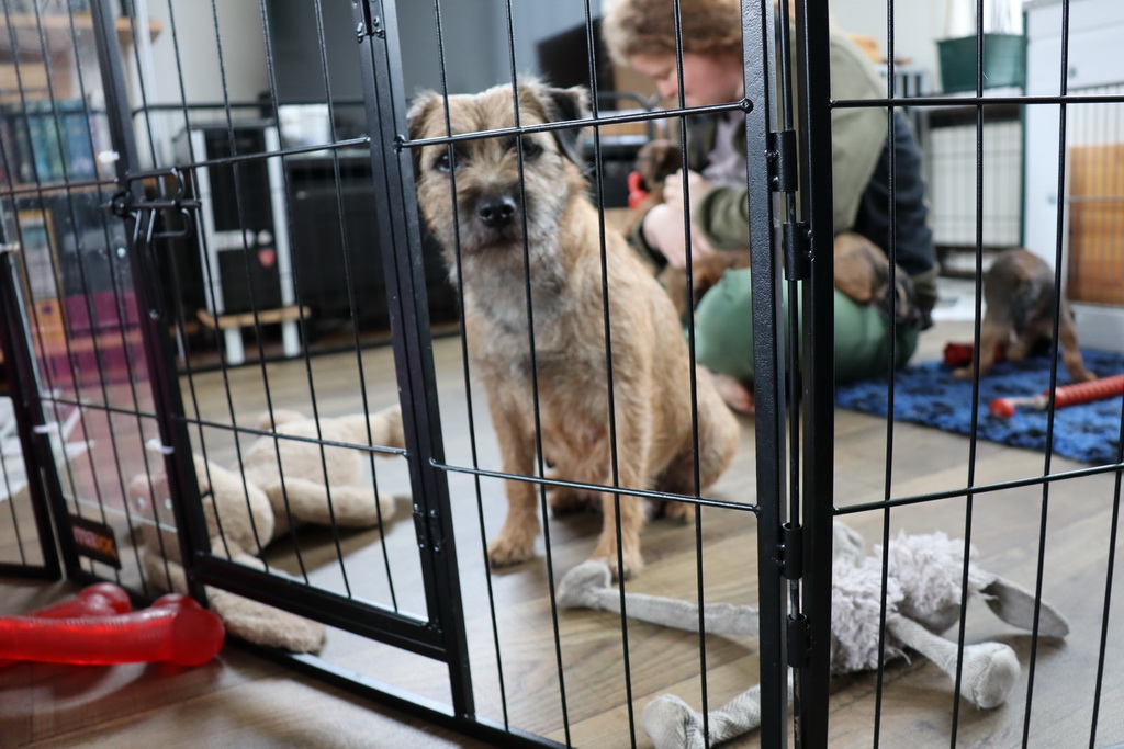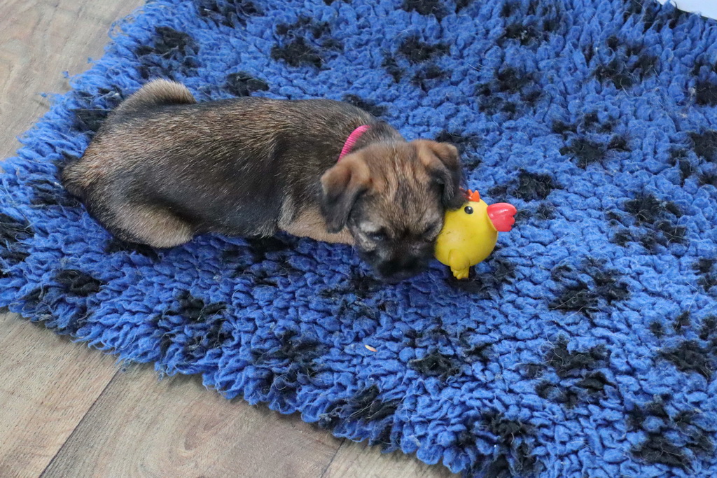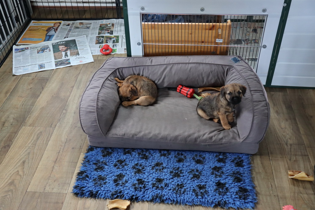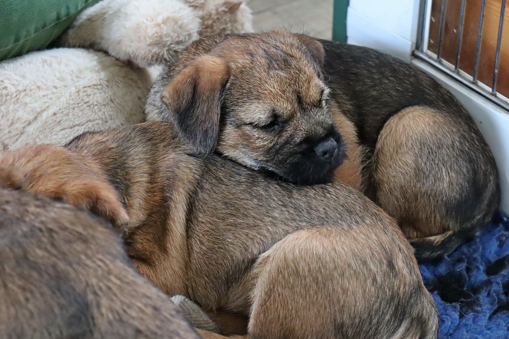 We hebben voor de pups twee tentjes met een tunnel daartussen opgezet. Dat was natuurlijk grote pret. Alles moest onderzocht worden en daarna werd de stevigheid getest. Al gauw lag de tunnel op een heel ander plaats en werd met vereende krachten een tentje ingeklapt. De pups hadden de grootste lol met z’n allen. We hopen niet dat er toekomstige eigenaren zijn die met hun Border willen gaan kamperen. We kunnen niet garanderen hoe lang hun tent dan overeind blijft staan.