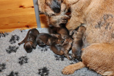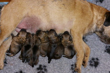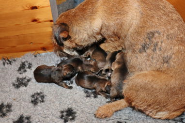 Jane heeft het opnieuw gepresteerd: een nest van zeven pups! Ditmaal zijn het drie reuen en vier teven. Moeder en kroost maken het prima.