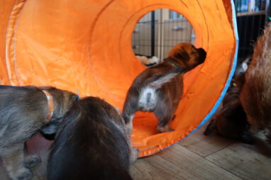 Pups zijn van nature heel nieuwsgierig en nergens echt bang voor. Het is daarom belangrijk ze in deze periode met zoveel mogelijk dingen kennis te laten maken en te laten onderzoeken.