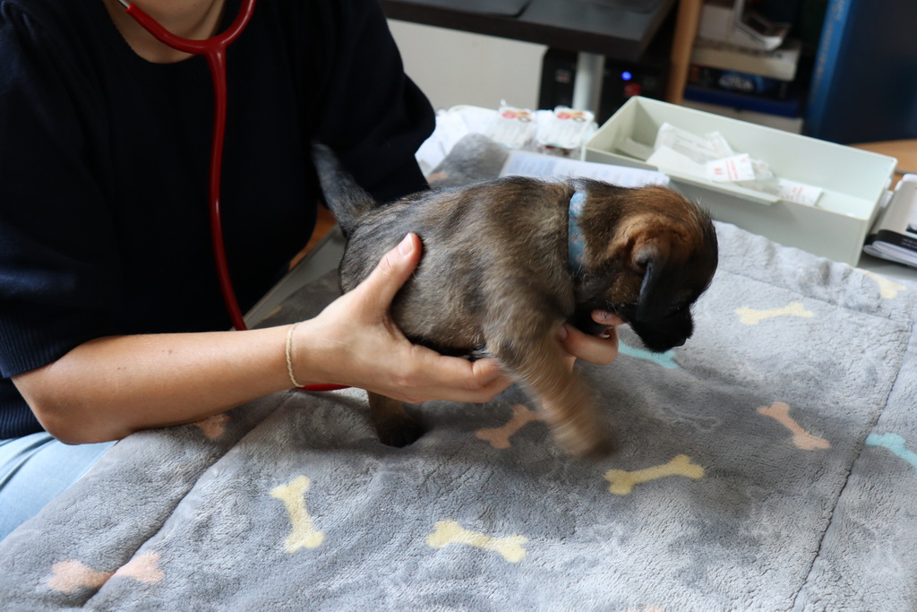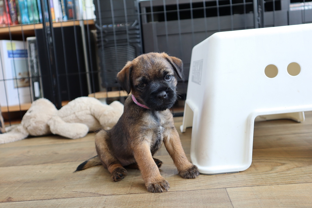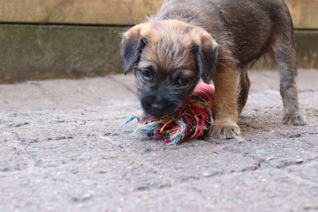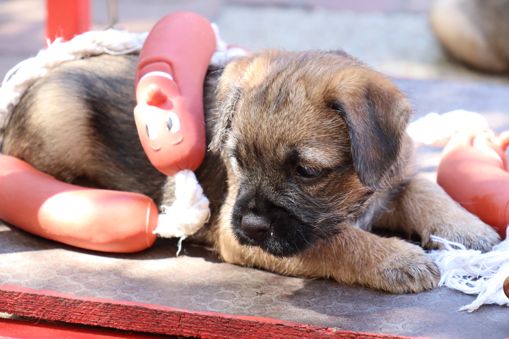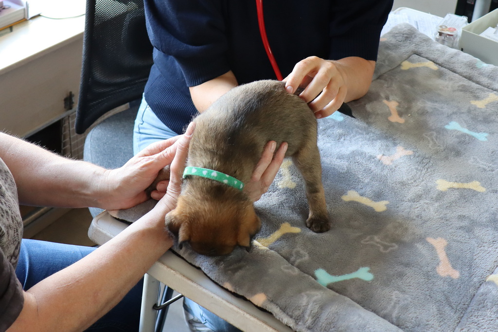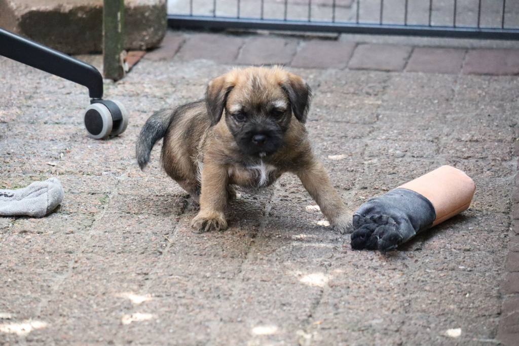De pups hebben allemaal een compleet gezondheidsonderzoek gekregen en daarna hun eerste enting. Alle pups waren prima in orde (we hadden ook niet anders verwacht). De enting ondergingen ze gelaten, maar zonder piepen of zeuren. Het zijn gewoon stoere Border Terriërs. Ze hebben nu ook allemaal een eigen dierenpaspoort.